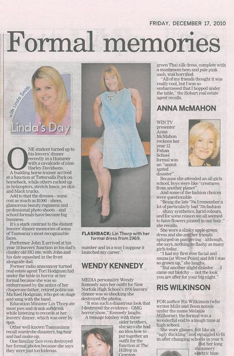 There was a humorous writeup in the Mercury on Friday 17 December on the Formal Memories of two members of the Fahan Alumnae who both graduated in the 1970s.