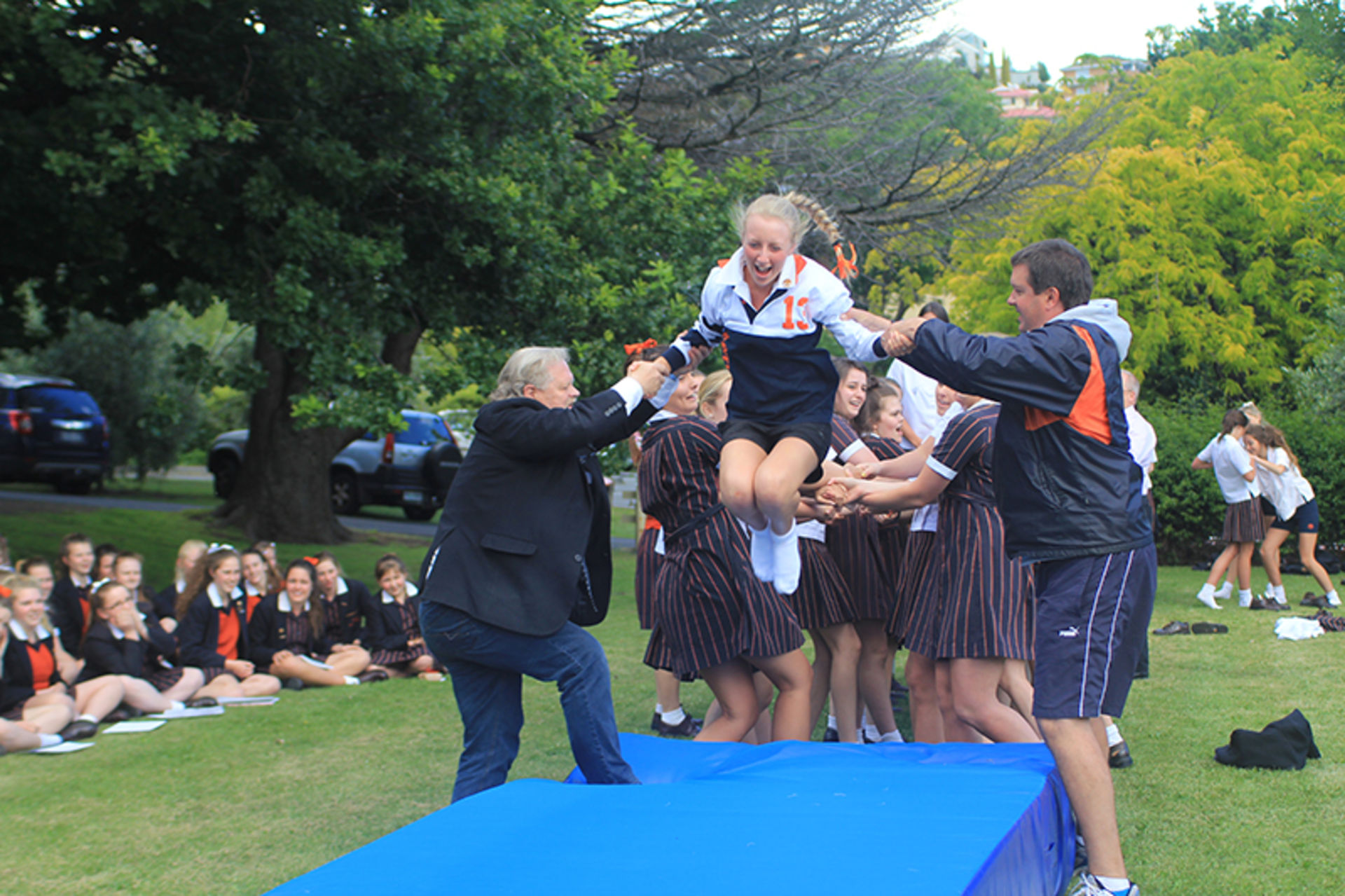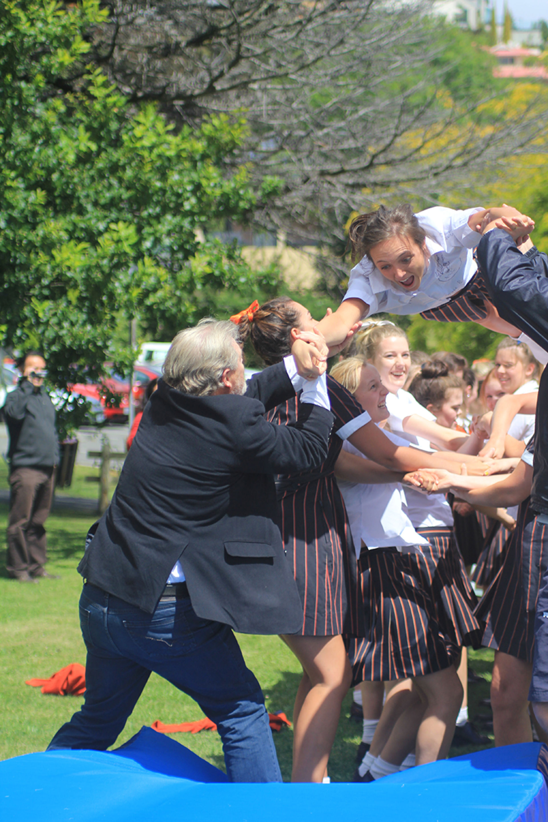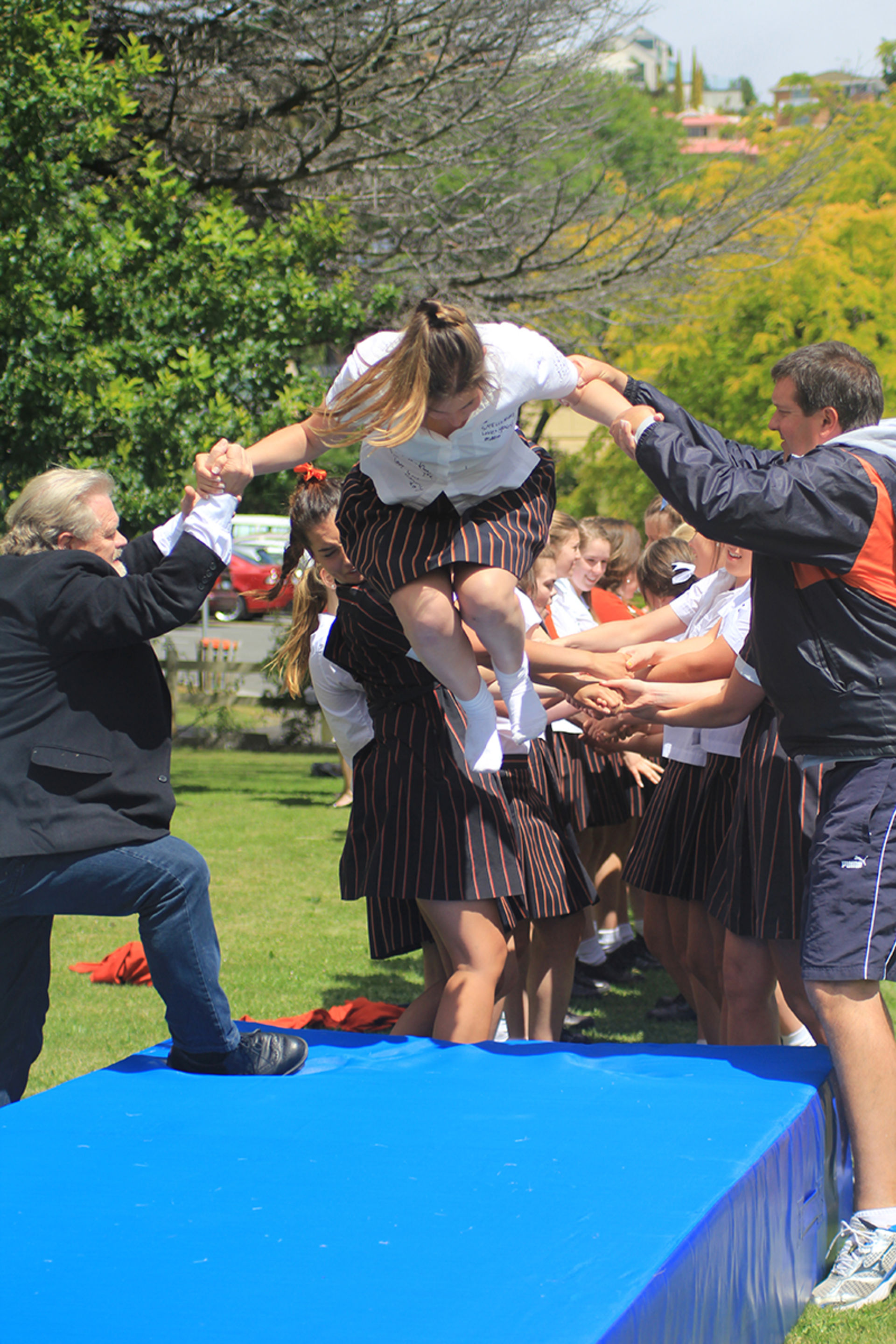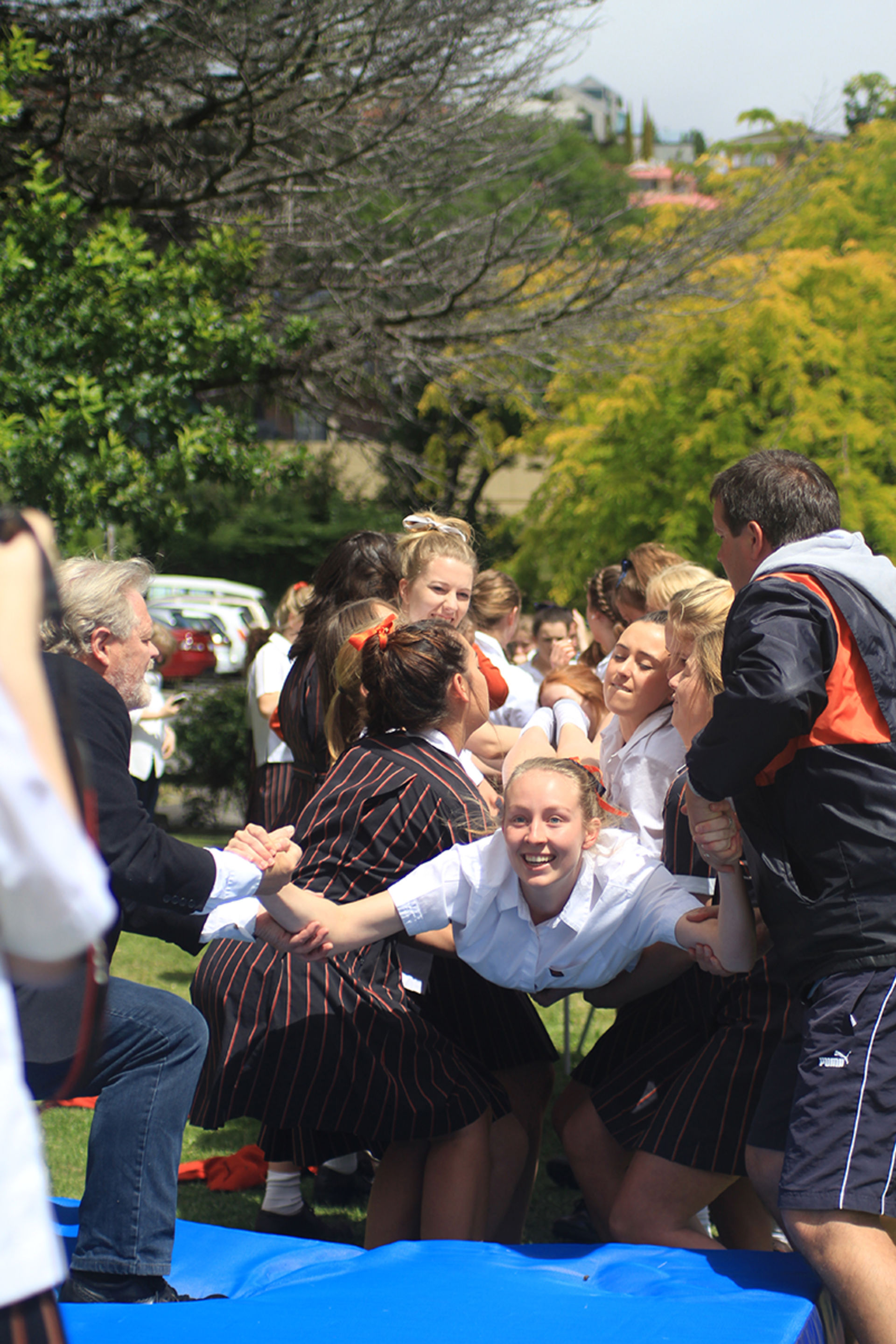 The Tossing Out ceremony is a time-honoured tradition at Fahan where the Year 12 girls are lovingly tossed along a sea of arms to mark their passing from a Fahan student to a Fahan Alumni member.