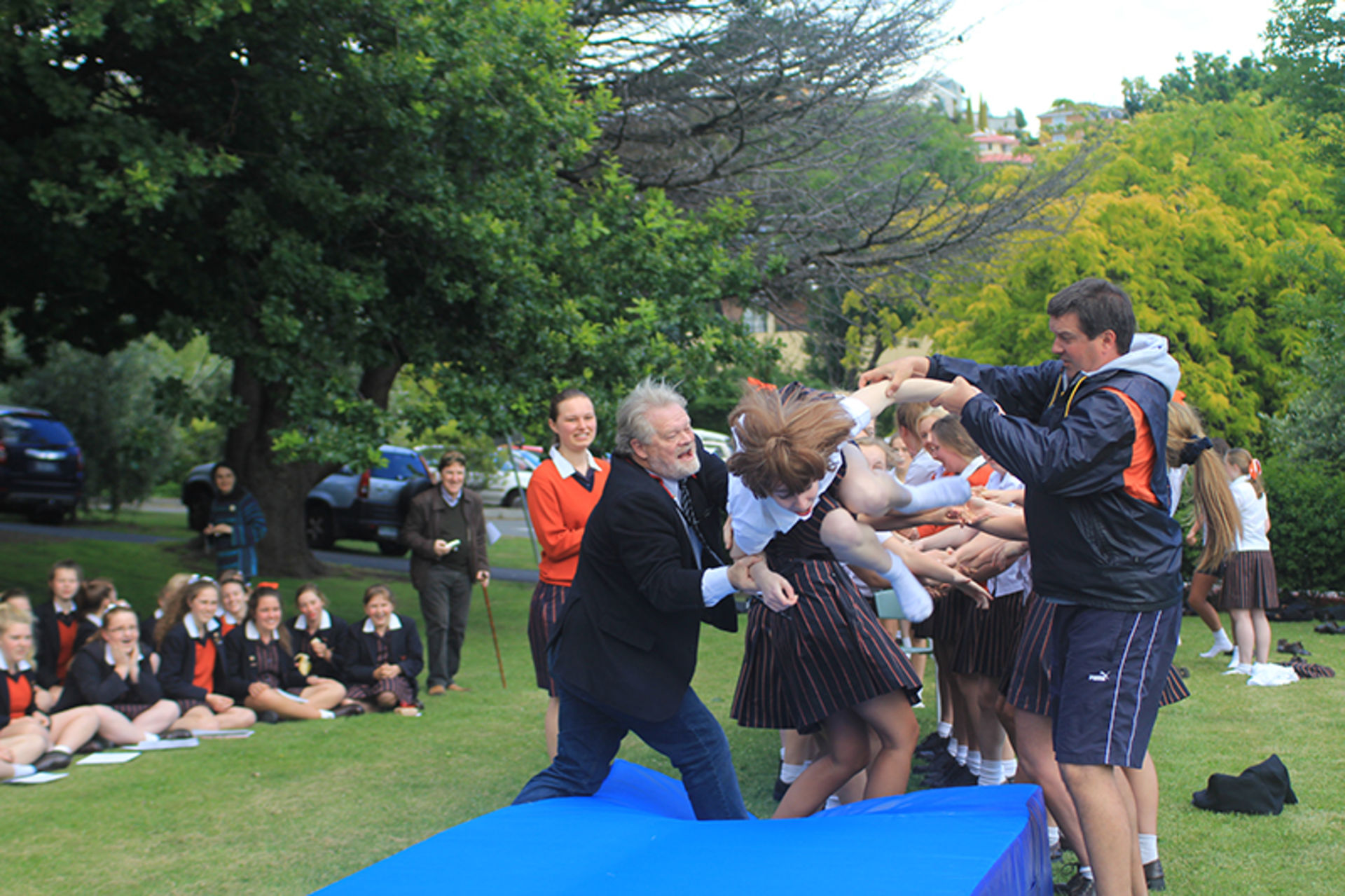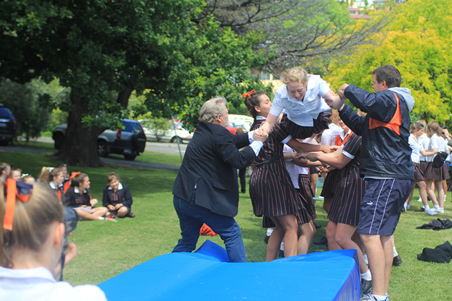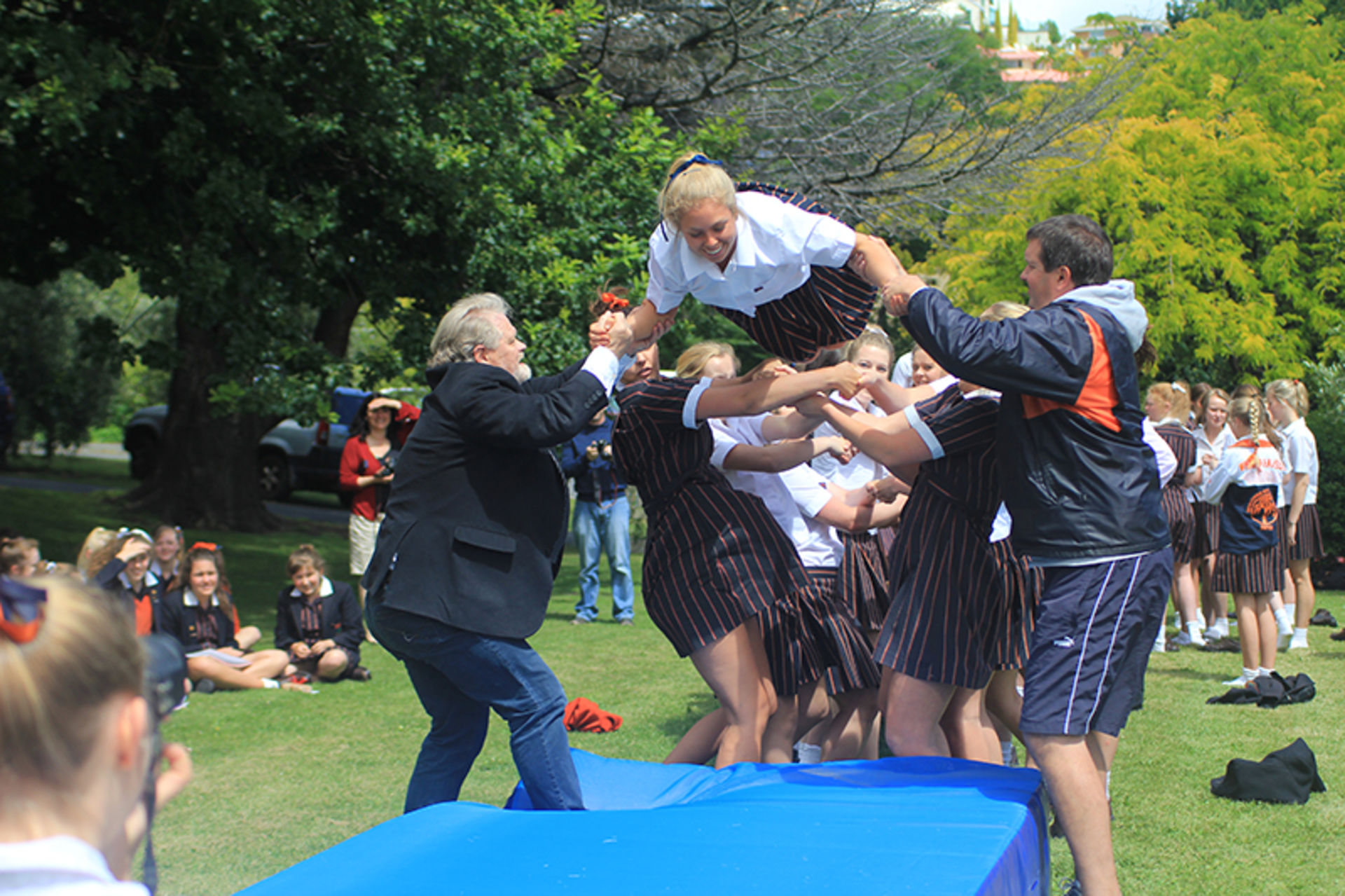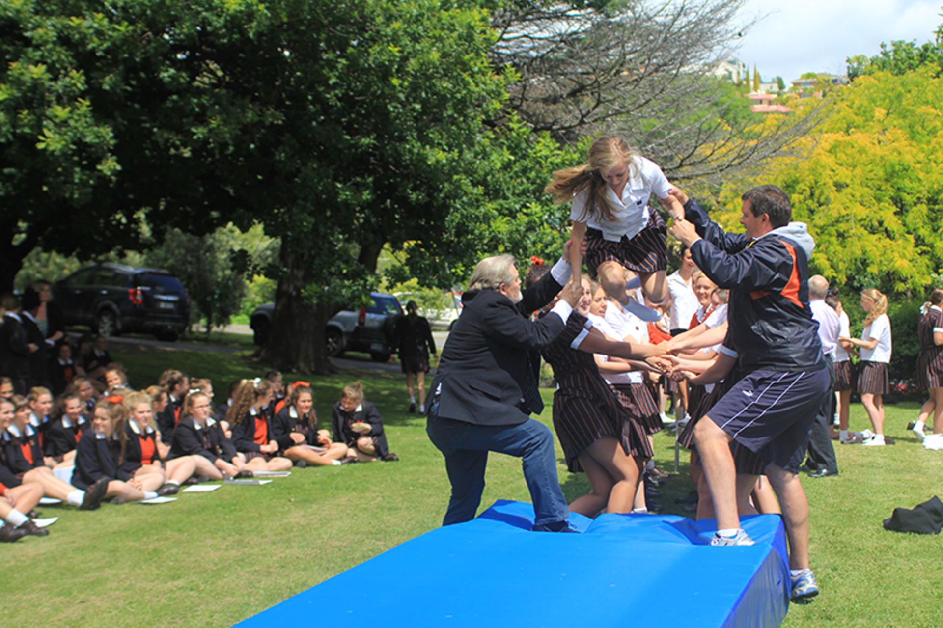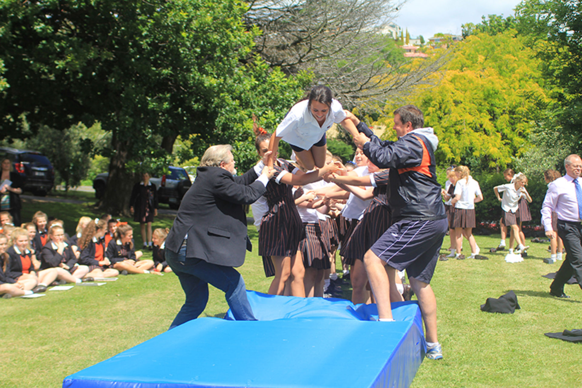 The Tossing Out ceremony is a time-honoured tradition at Fahan where the Year 12 girls are lovingly tossed along a sea of arms to mark their passing from a Fahan student to a Fahan Alumni member.