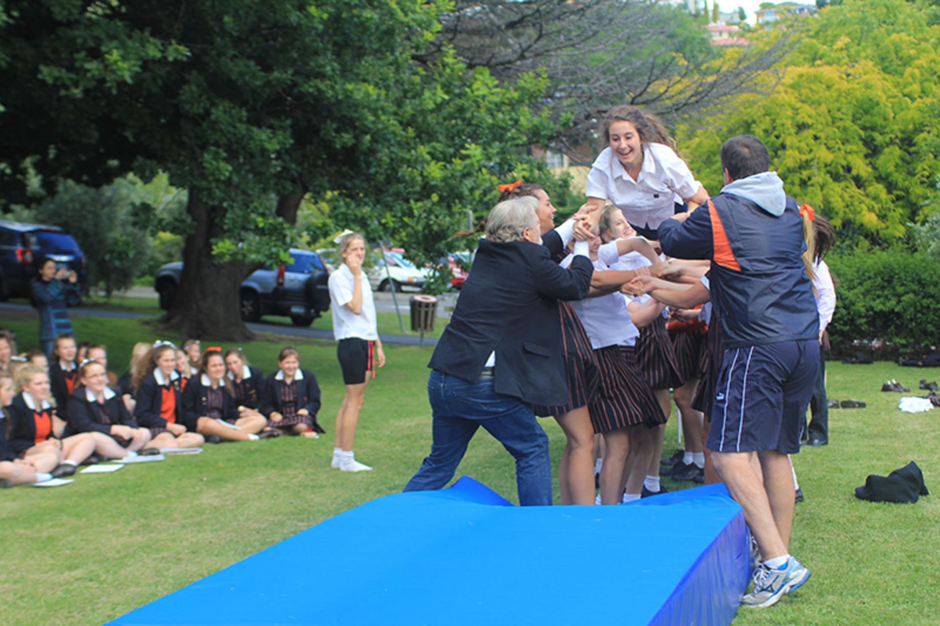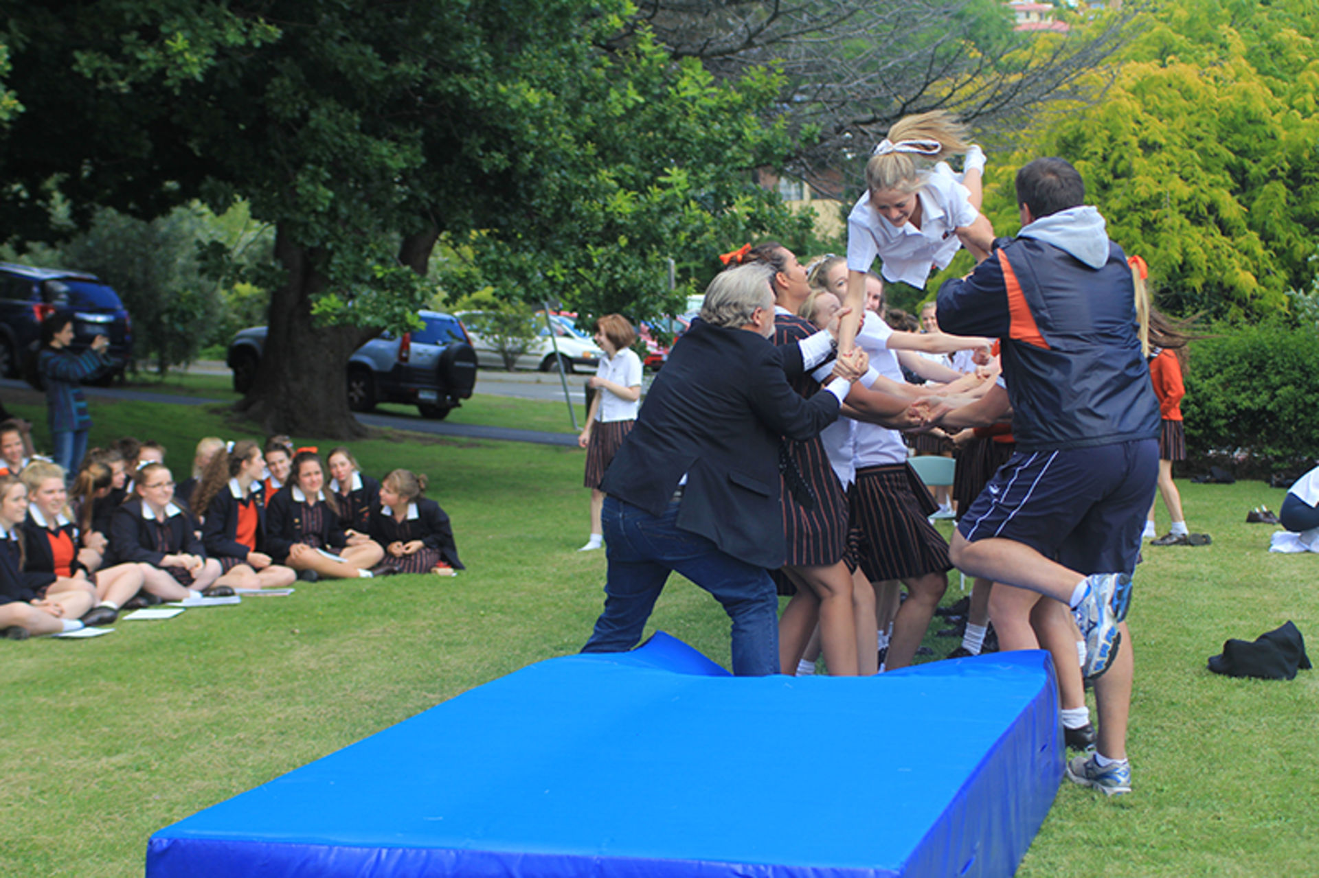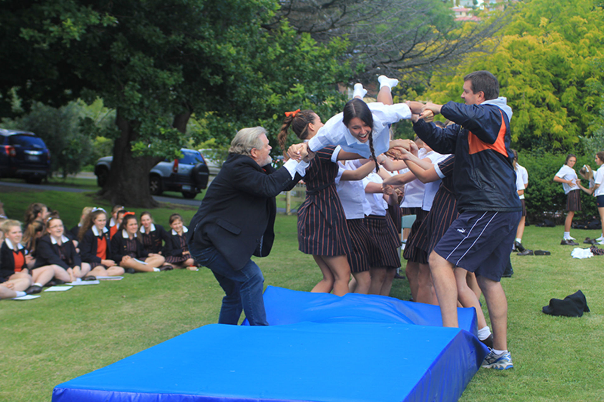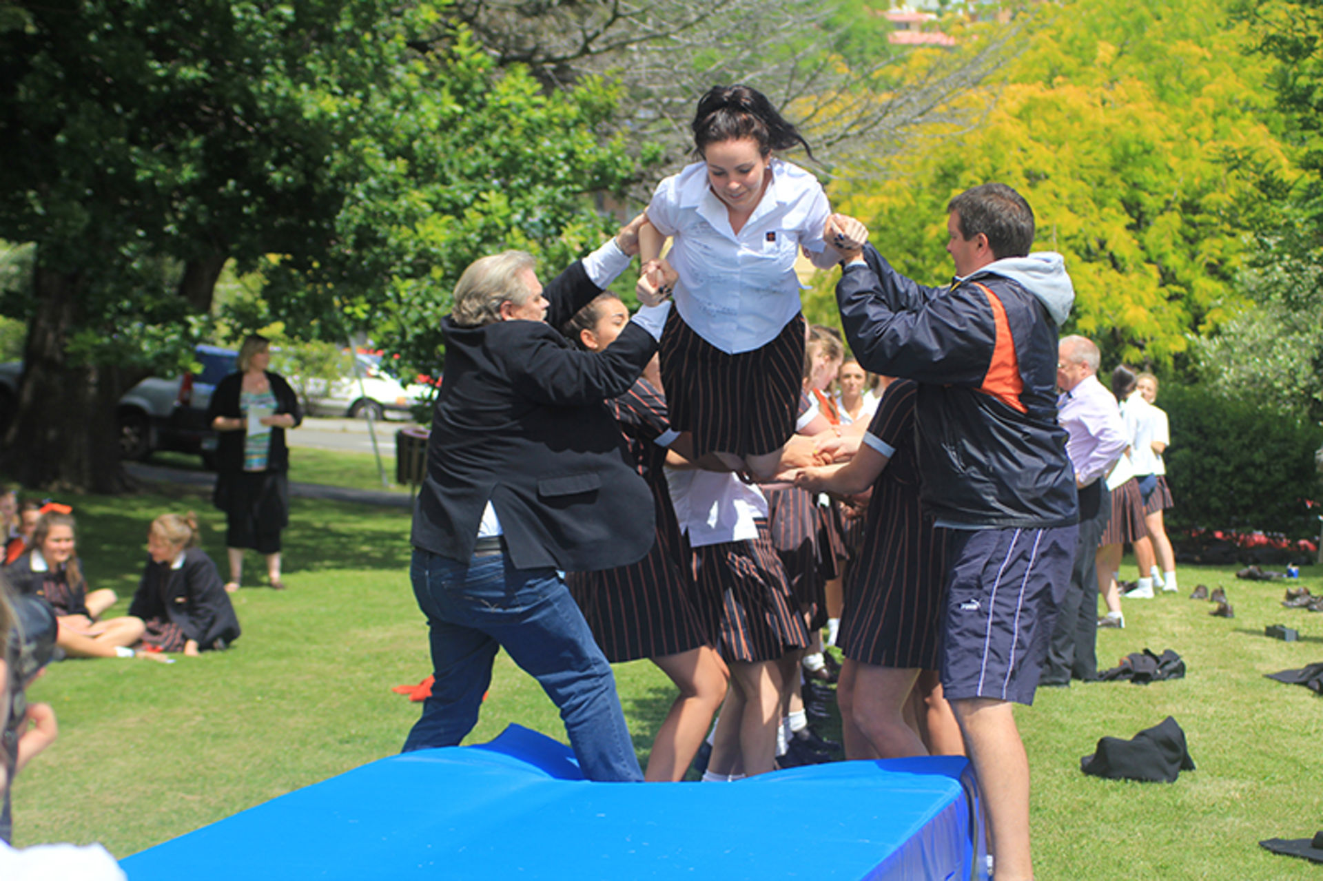 The Tossing Out ceremony is a time-honoured tradition at Fahan where the Year 12 girls are lovingly tossed along a sea of arms to mark their passing from a Fahan student to a Fahan Alumni member.