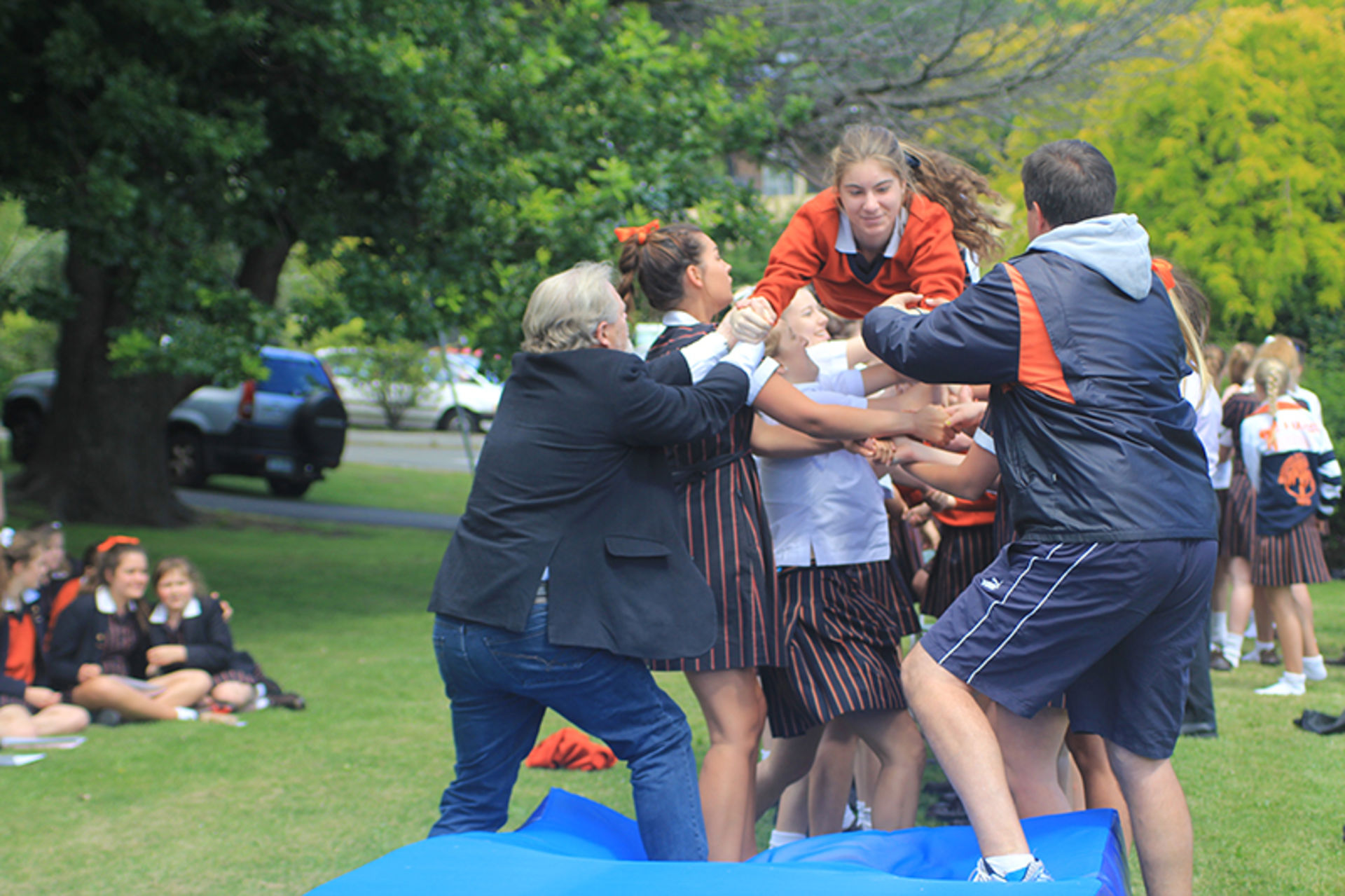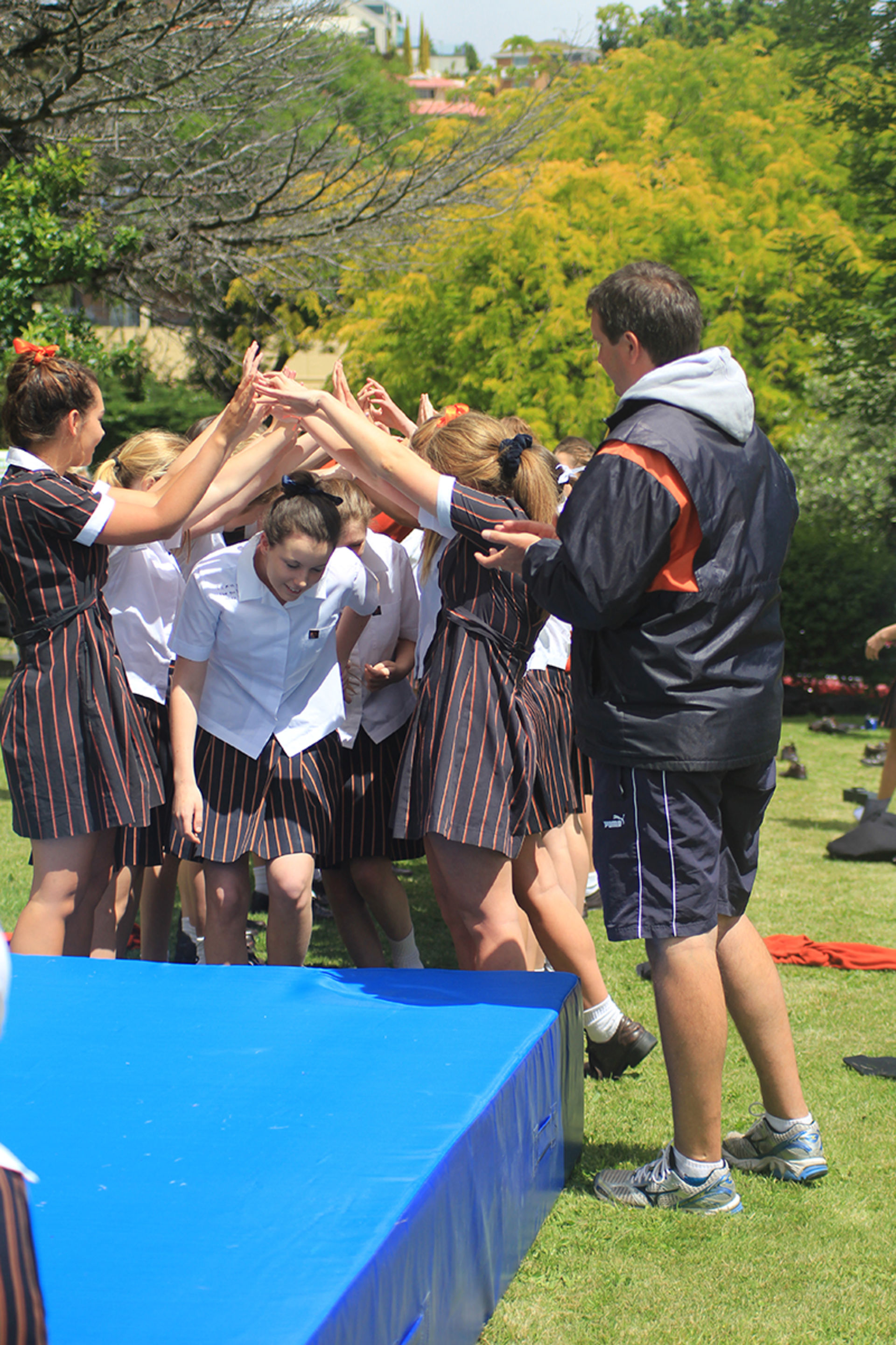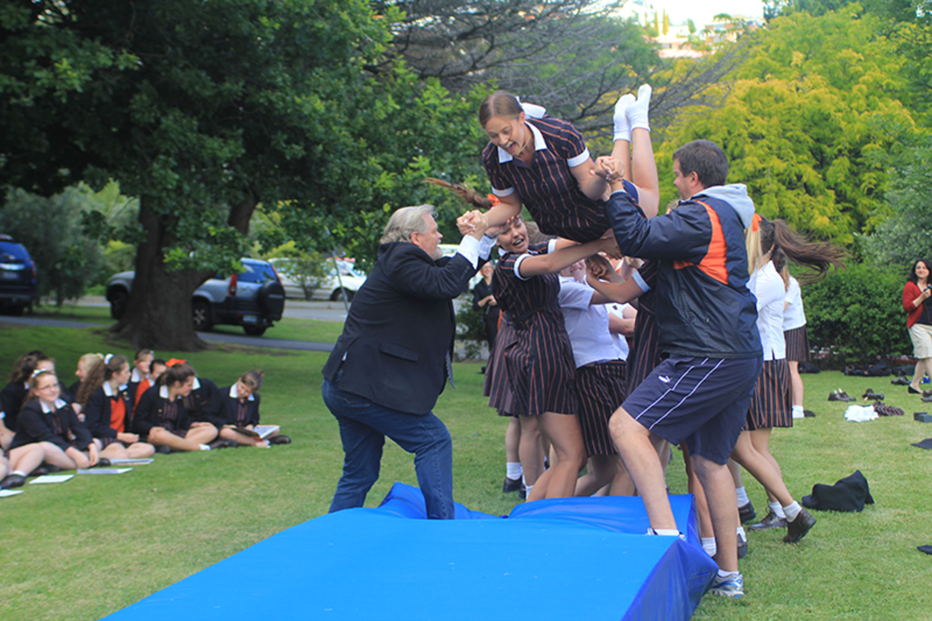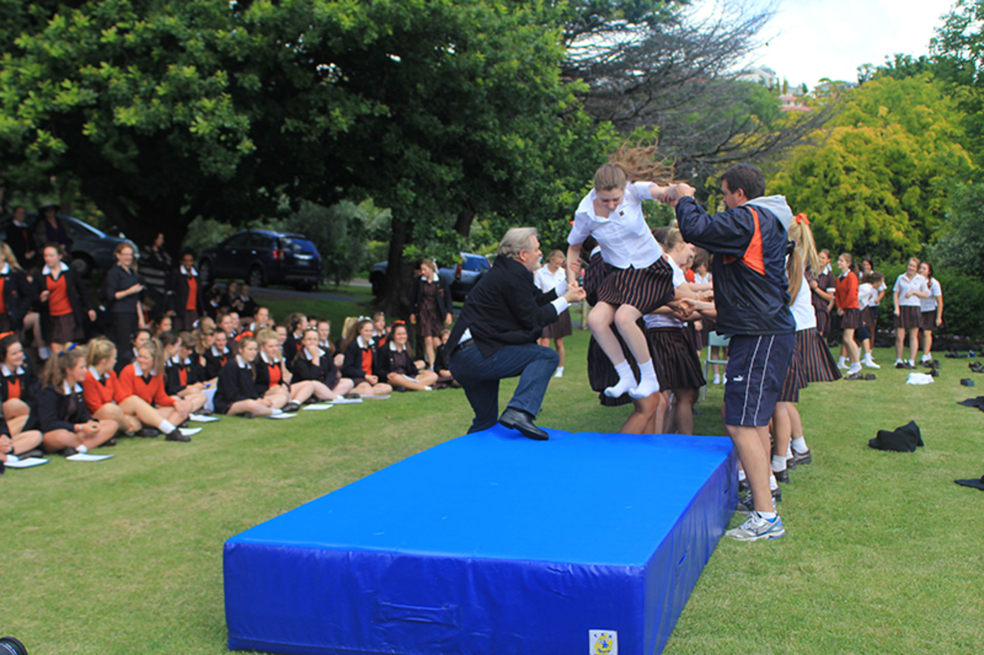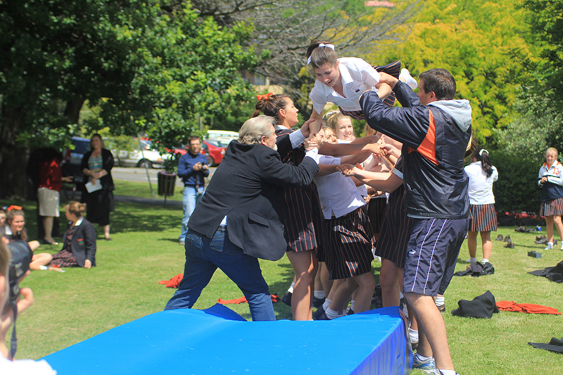 The Tossing Out ceremony is a time-honoured tradition at Fahan where the Year 12 girls are lovingly tossed along a sea of arms to mark their passing from a Fahan student to a Fahan Alumni member.