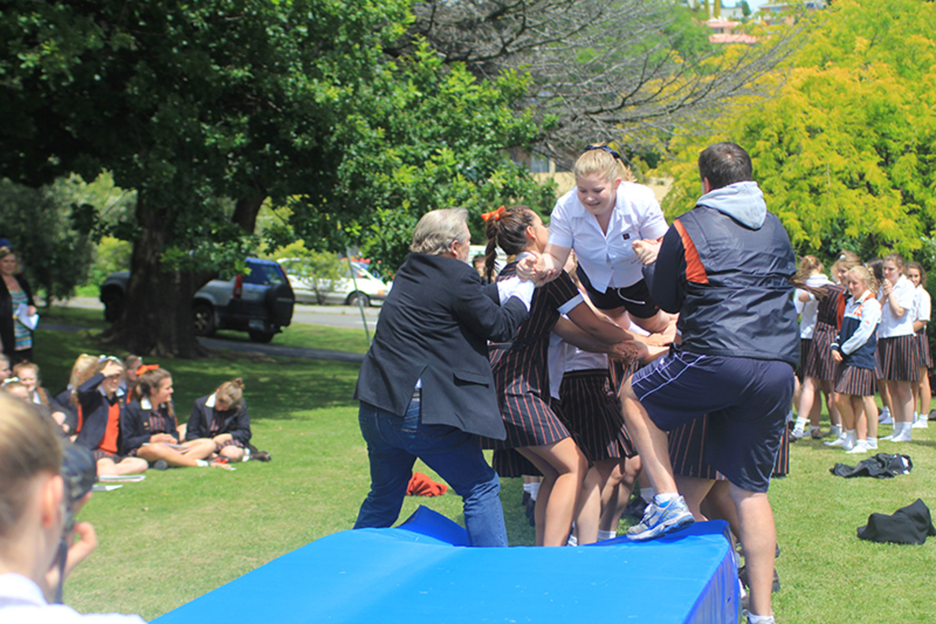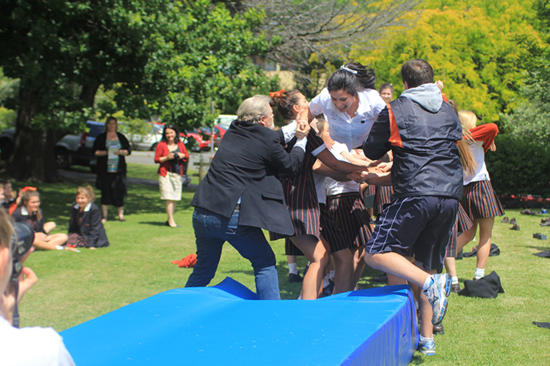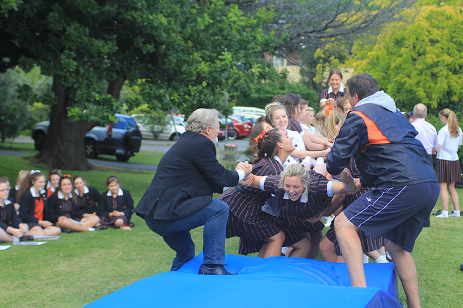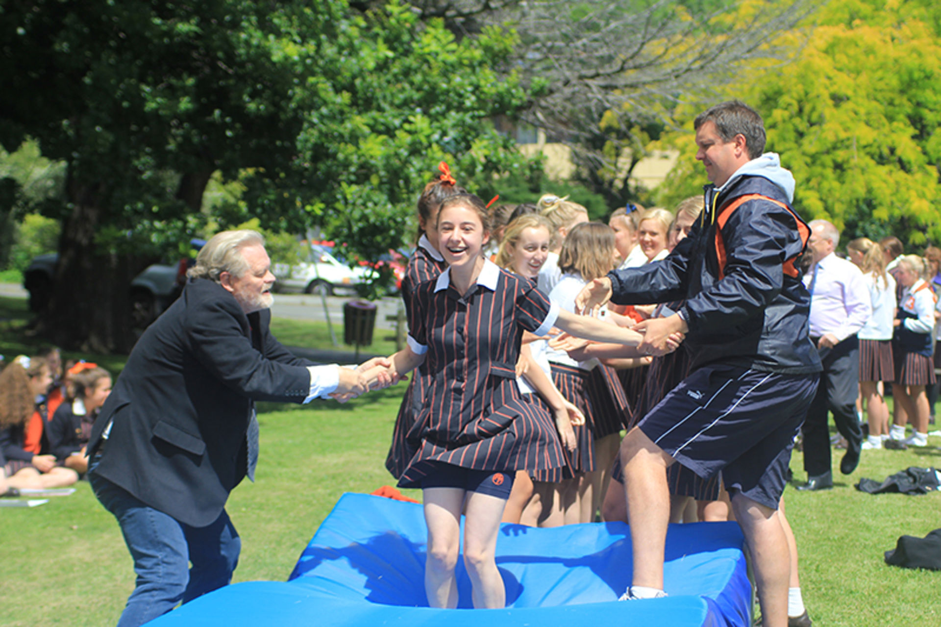 The Tossing Out ceremony is a time-honoured tradition at Fahan where the Year 12 girls are lovingly tossed along a sea of arms to mark their passing from a Fahan student to a Fahan Alumni member.