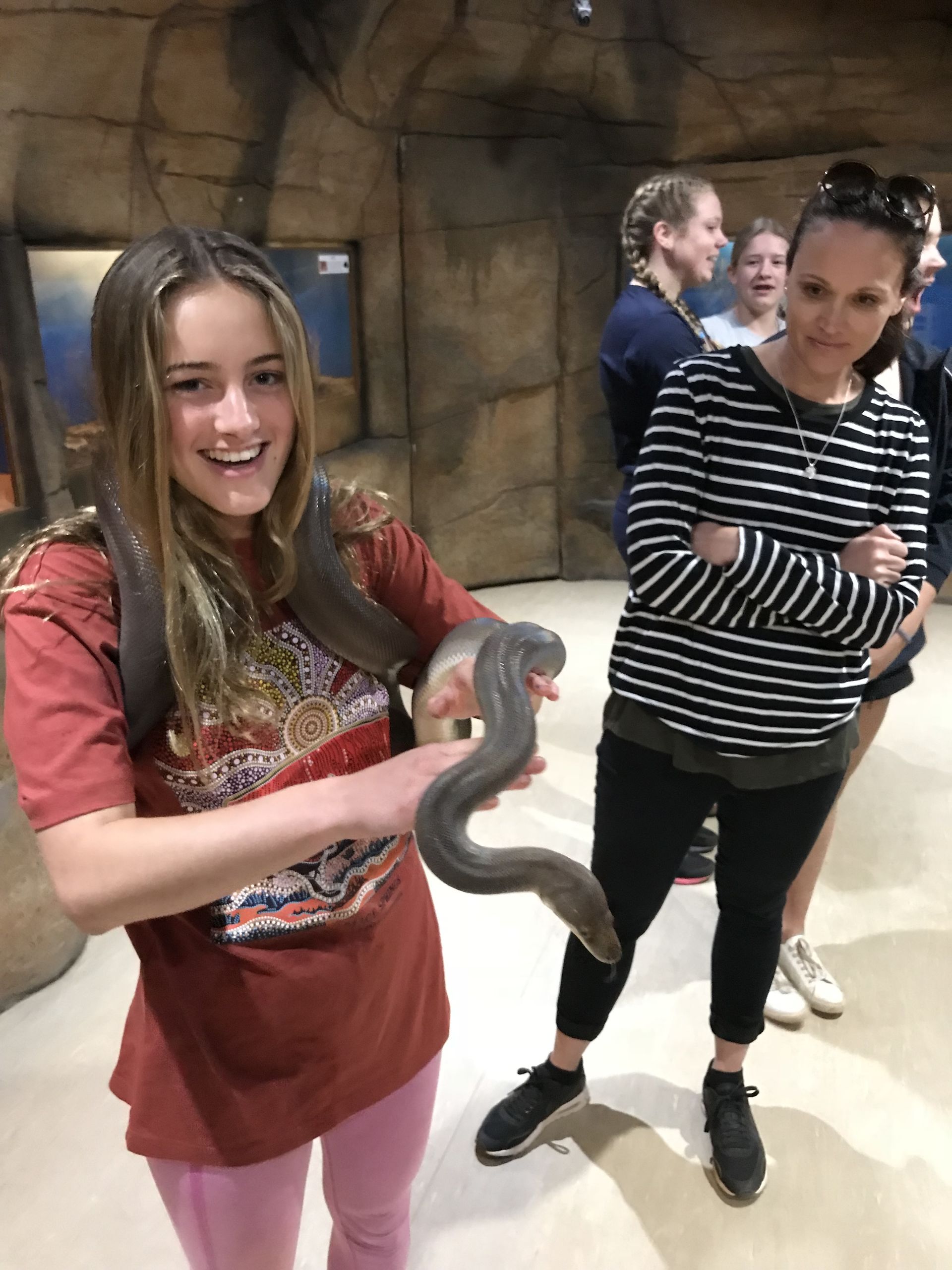 The final two days of the trip were based around Alice Springs with a camel ride and camel-farm tour and the chance to watch the CAFL preliminary final between the South Roos and the Federal Demons. An Anzac Hill lookout visit provided 360-degree views of the town. The girls also visited the Olive Pink Botanic Garden and the Reptile Centre where to get up close and personal with a bearded dragon, a bobtail lizard, a blue-tongue lizard and Lexi the water python!