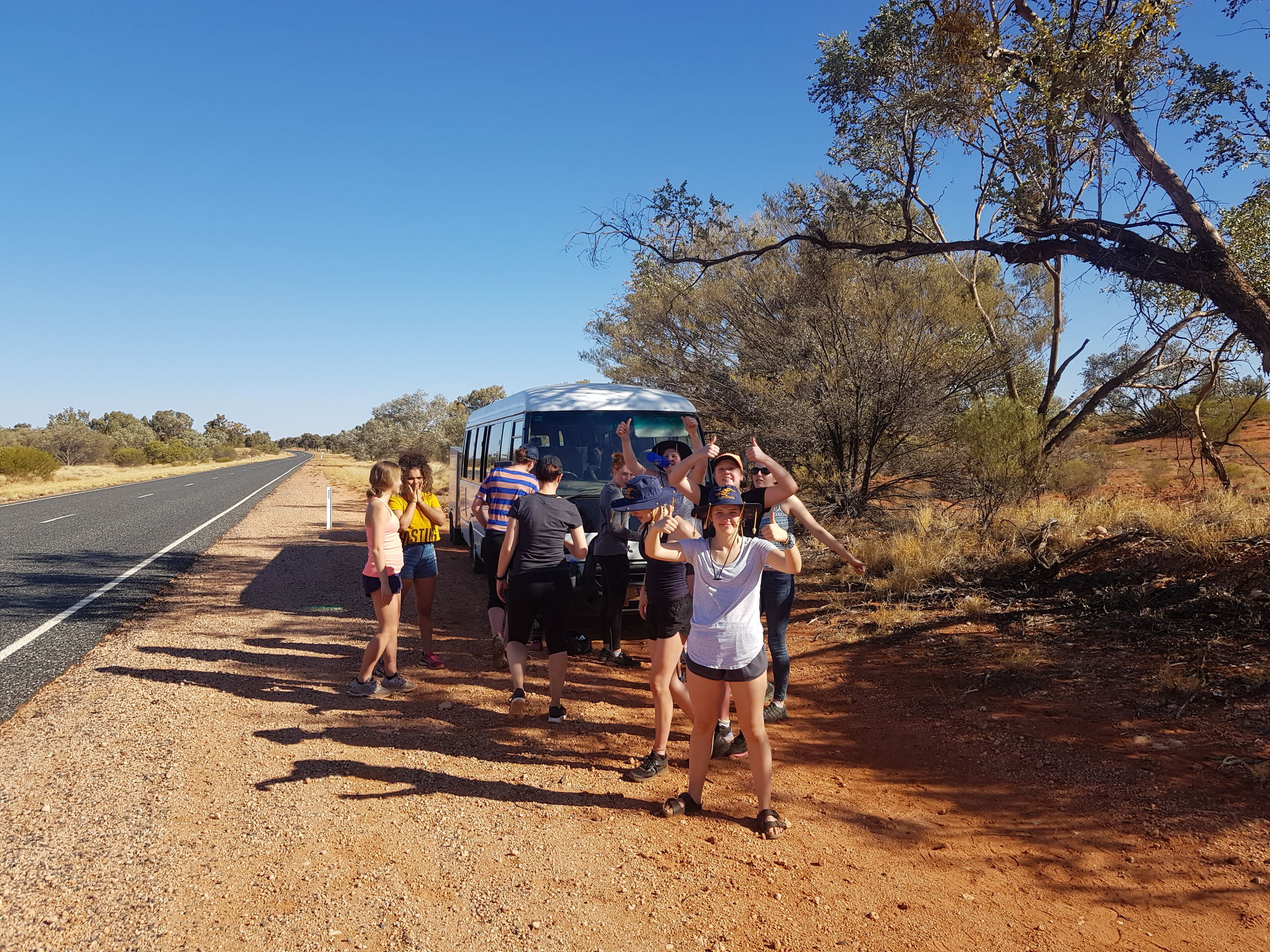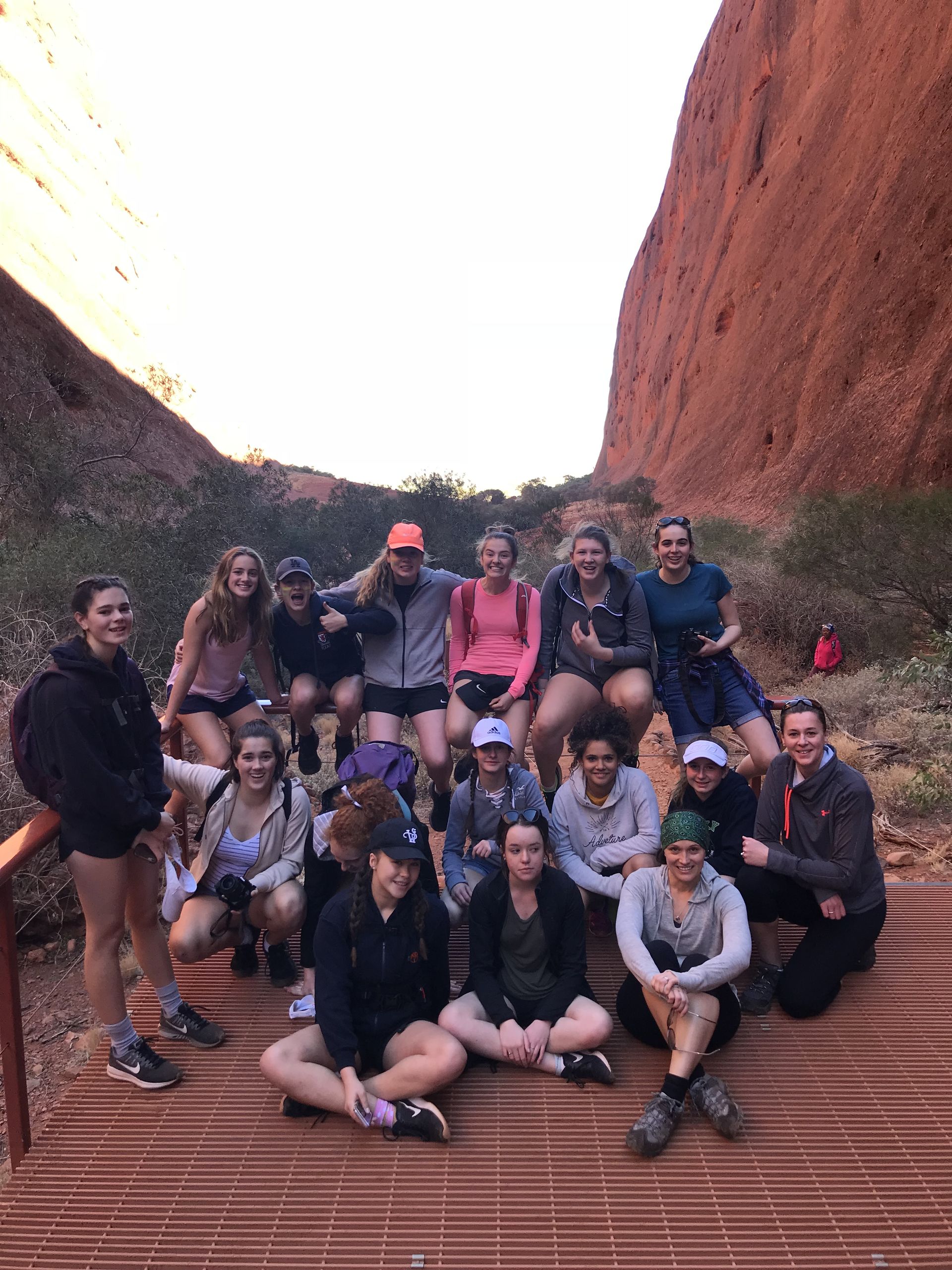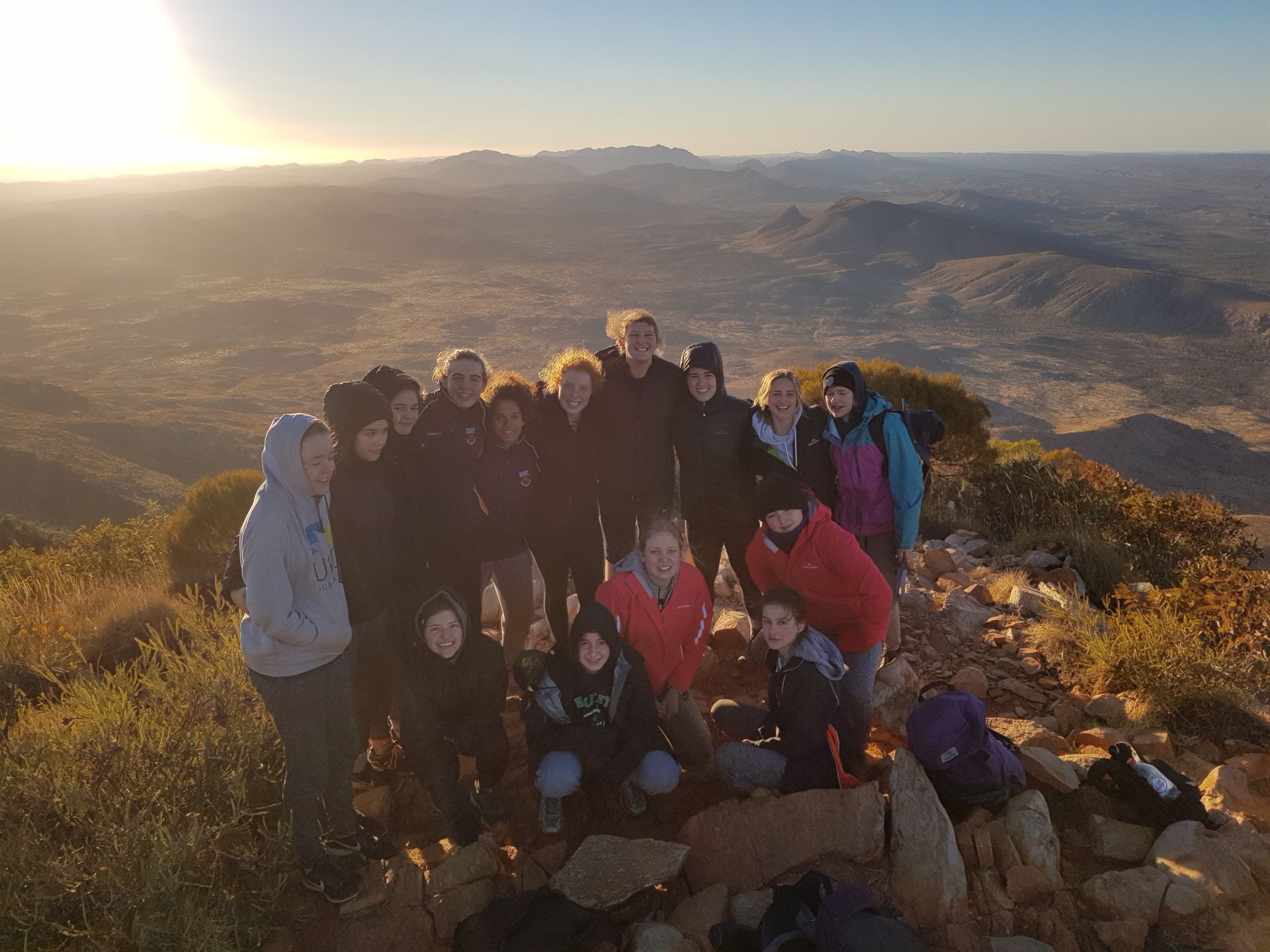 In Central Australia, a challenging, but wonderful, trip saw 15 adventurous Year 9 girls, and three committed staff members (Mrs Ali Manson, Mr Dan Firth and Mrs Liana Hayes) waking up at 3:30am to climb Mt Sonder and catch a spectacular sunrise. The trip had an eventful start with the tour bus breaking down in the middle of nowhere, but also included some unforgettable moments: watching the sunset and sunrise over Uluru, walking between the domes of Kata tjuta, sleeping under the stars in the MacDonnell Ranges and walking amazing trails through gorges, chasms and very dry river beds.