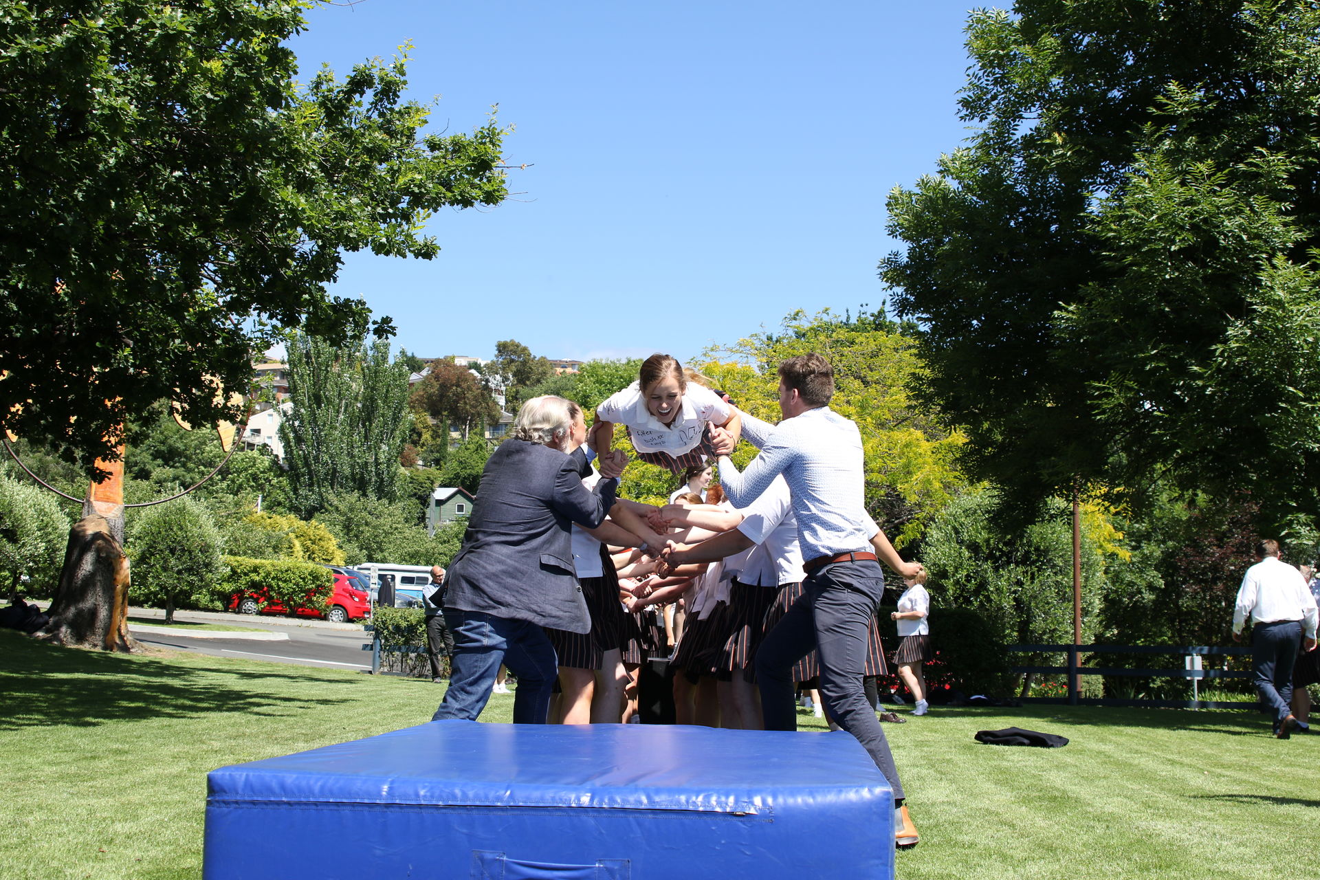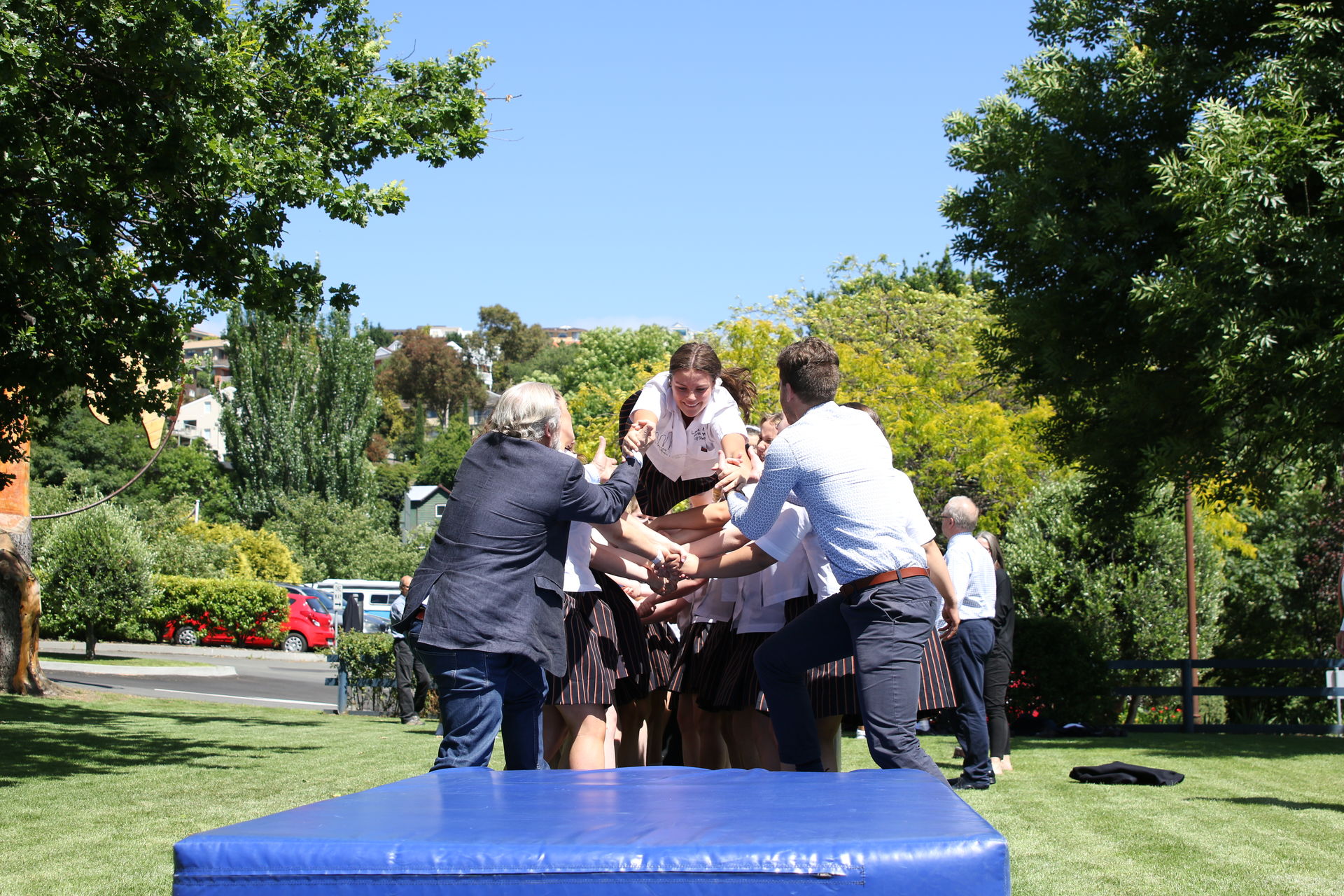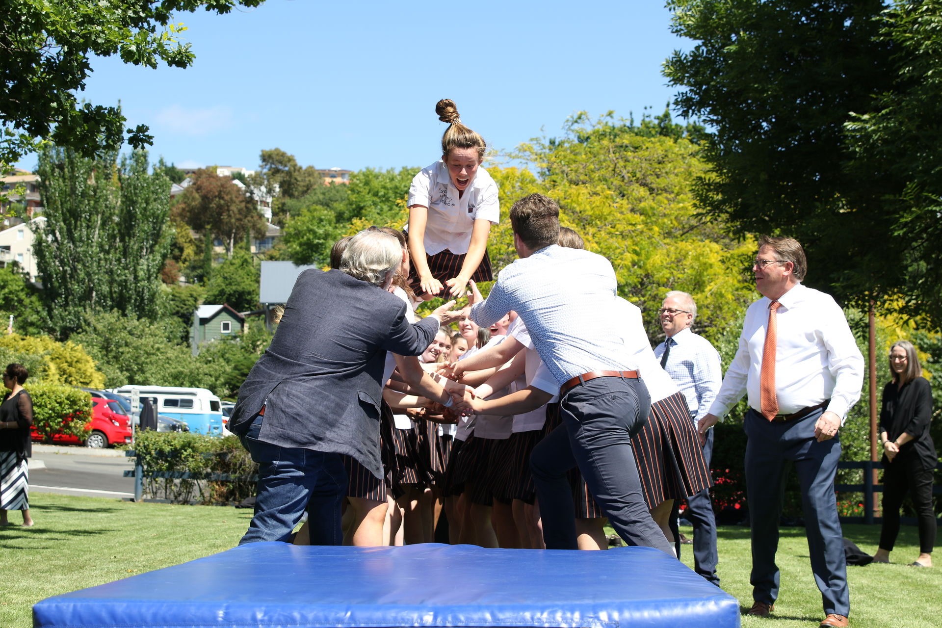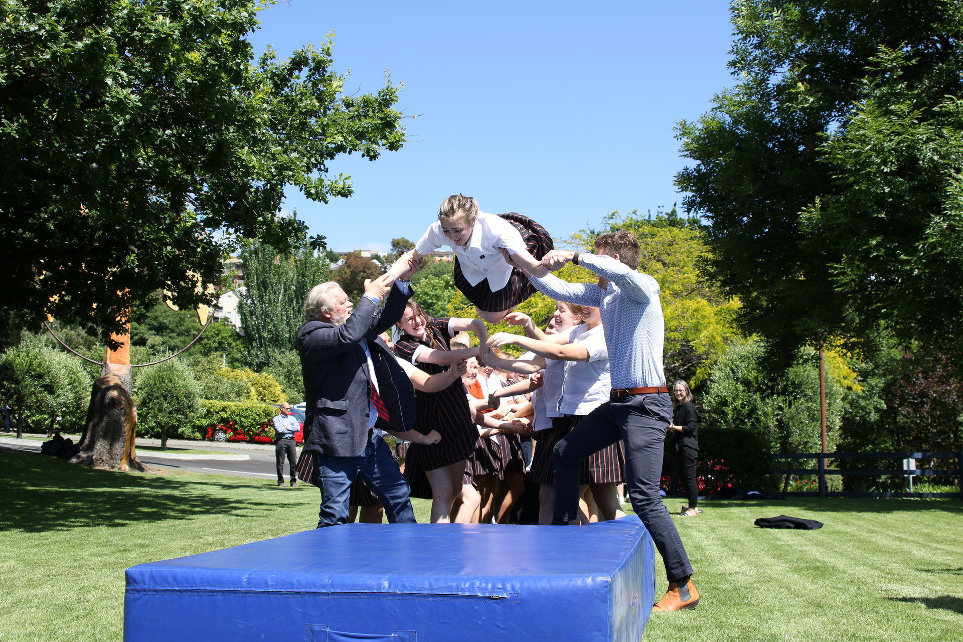 On Tuesday 11 December, continuing a tradition that dates back to the late 1930s, the Class of 2018 were ceremoniously “Tossed Out” on the Boarders’ Flat outside Nateby. Amid shrieks of laughter and excitement and in the presence of staff, family and friends, the Year 12 leavers were bounced along a line of linked hands formed by the Year 11 girls and “Tossed Out” of the School.