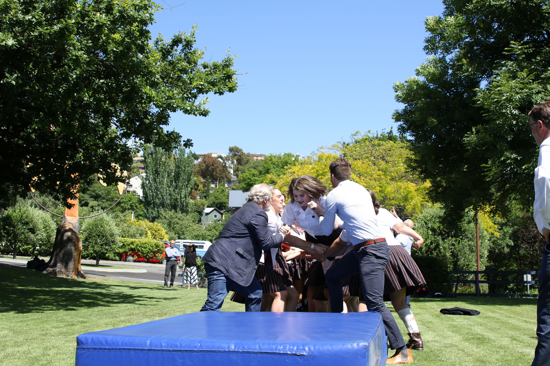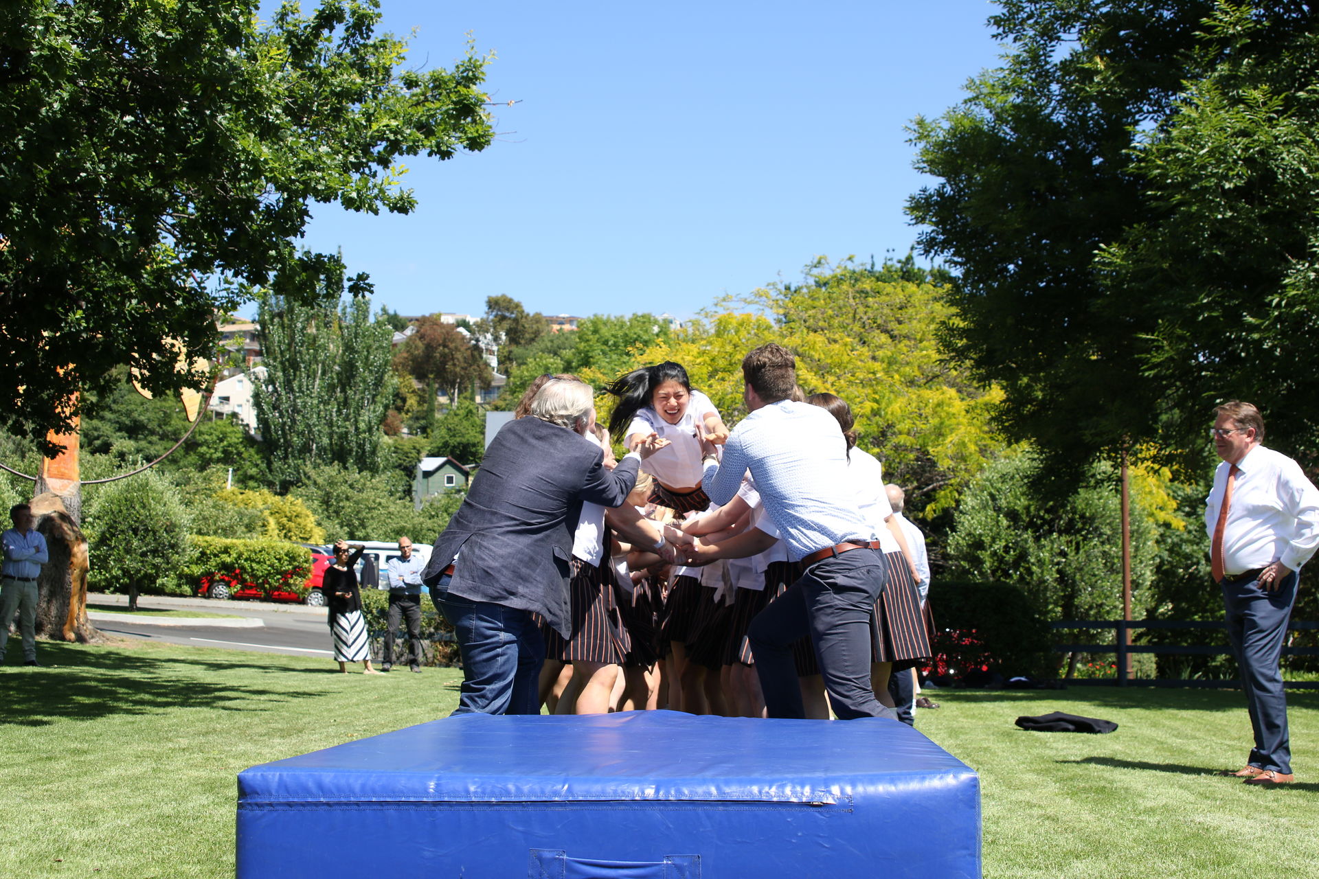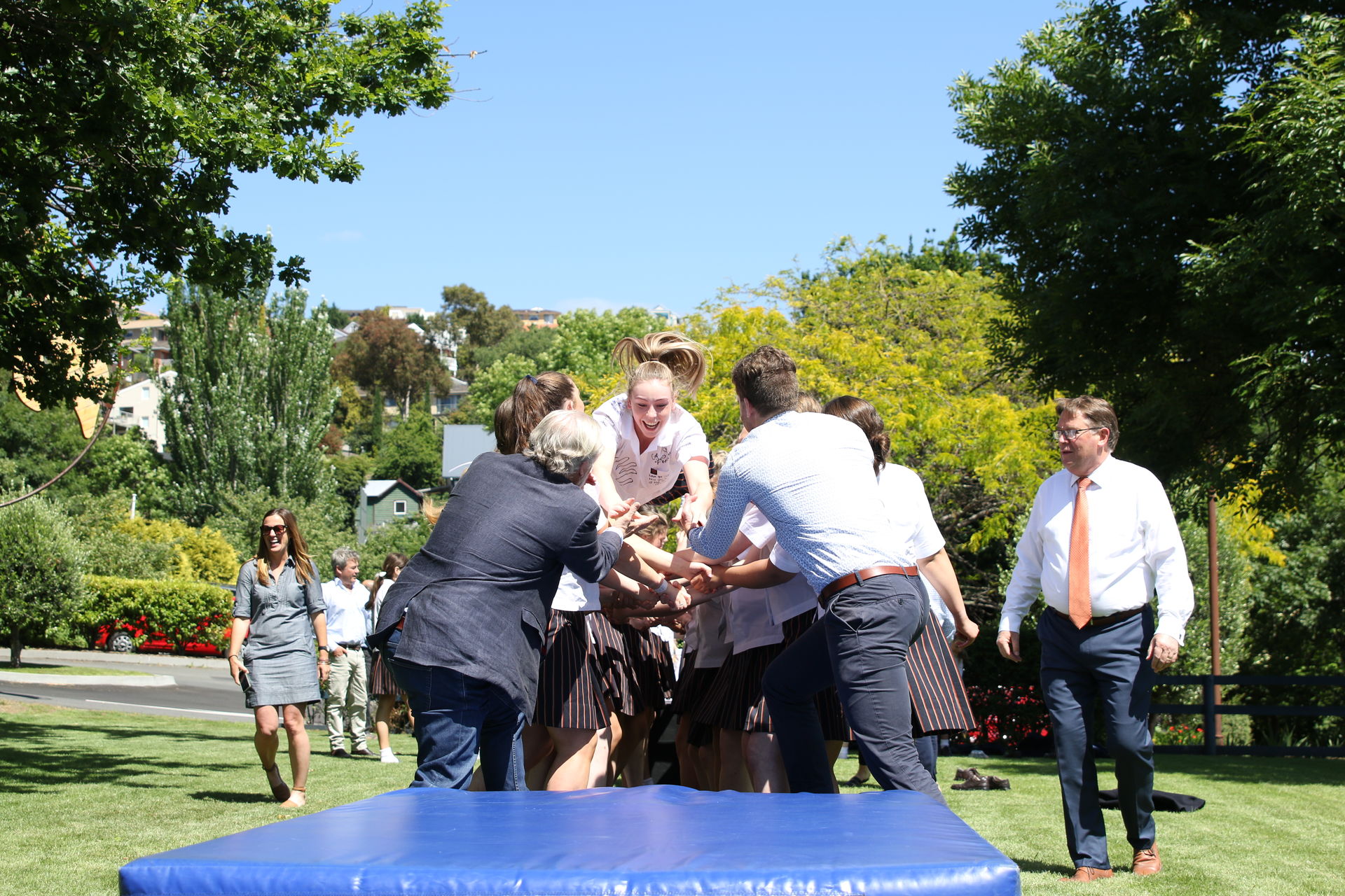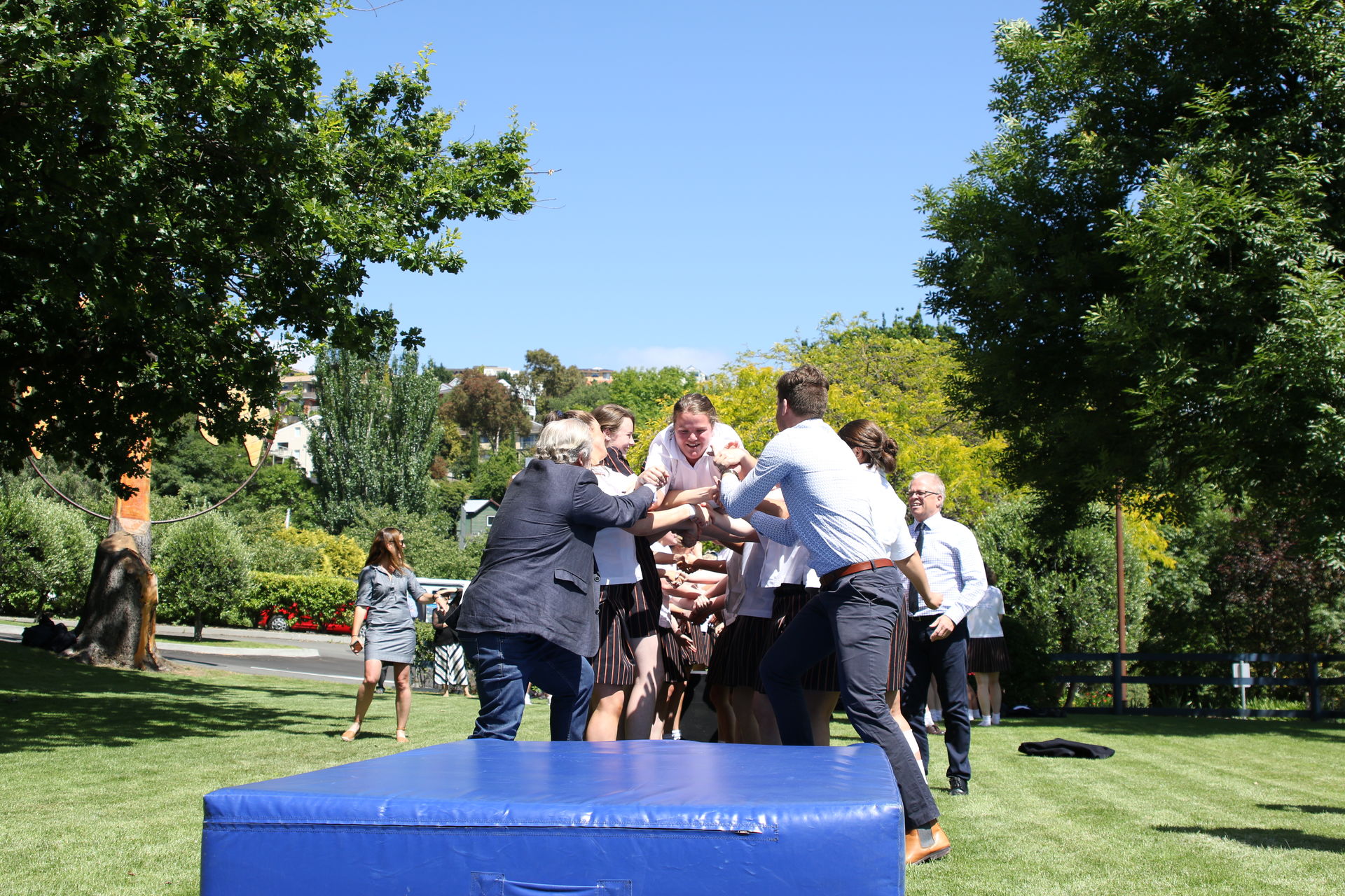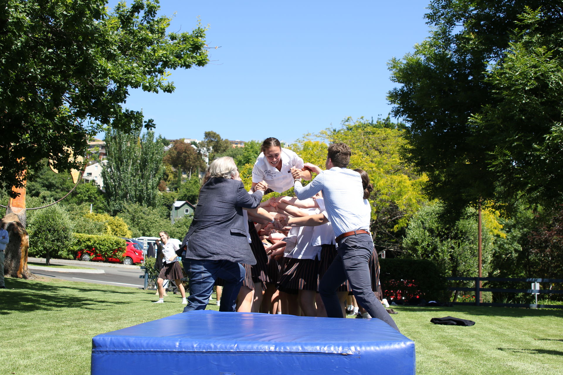 On Tuesday 11 December, continuing a tradition that dates back to the late 1930s, the Class of 2018 were ceremoniously “Tossed Out” on the Boarders’ Flat outside Nateby. Amid shrieks of laughter and excitement and in the presence of staff, family and friends, the Year 12 leavers were bounced along a line of linked hands formed by the Year 11 girls and “Tossed Out” of the School.