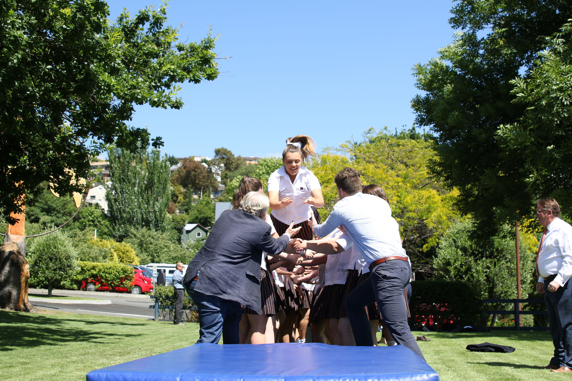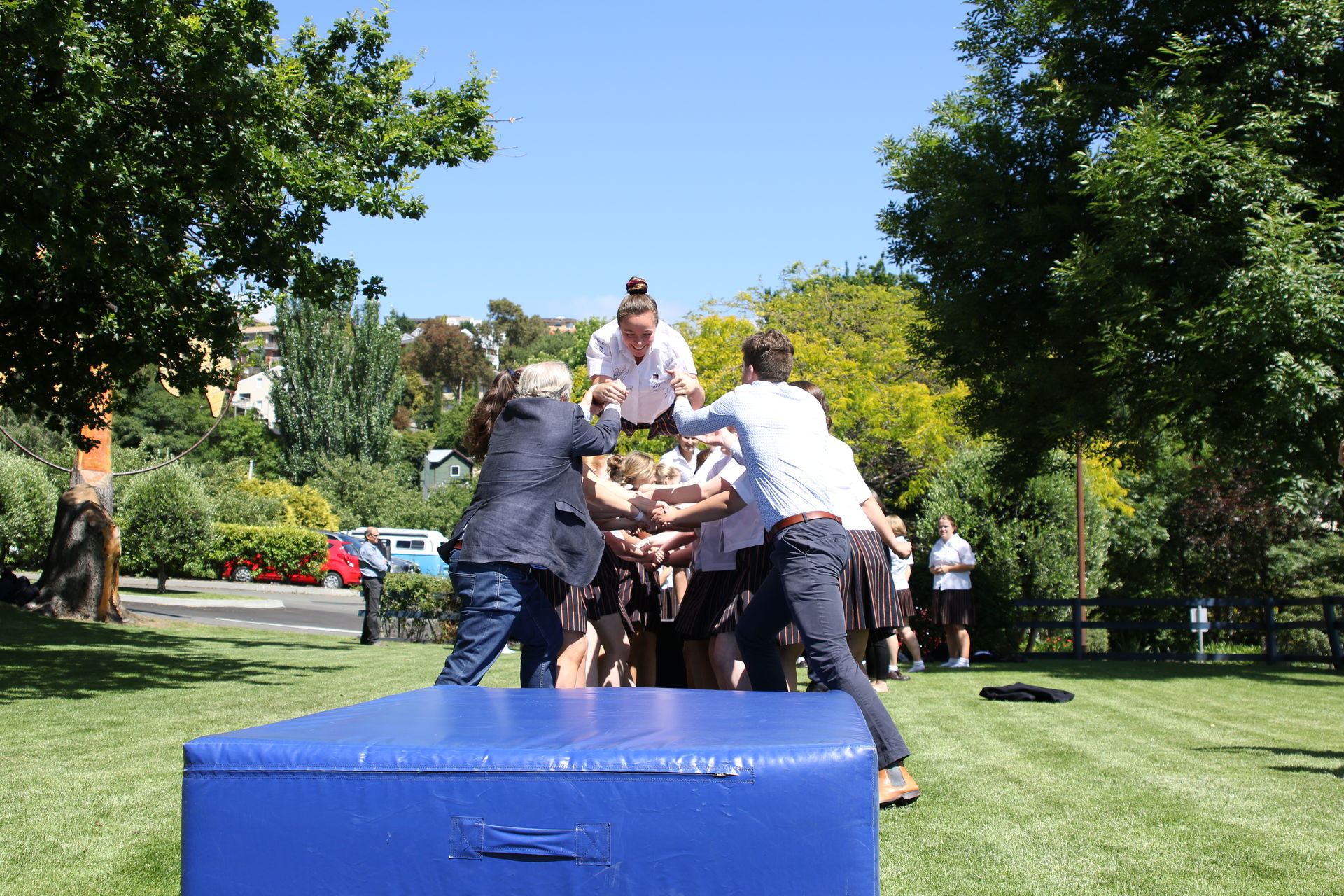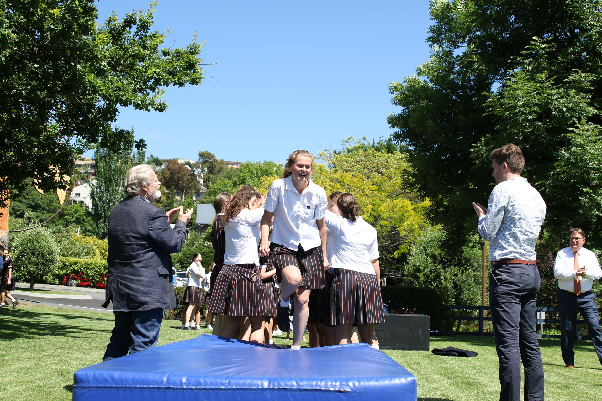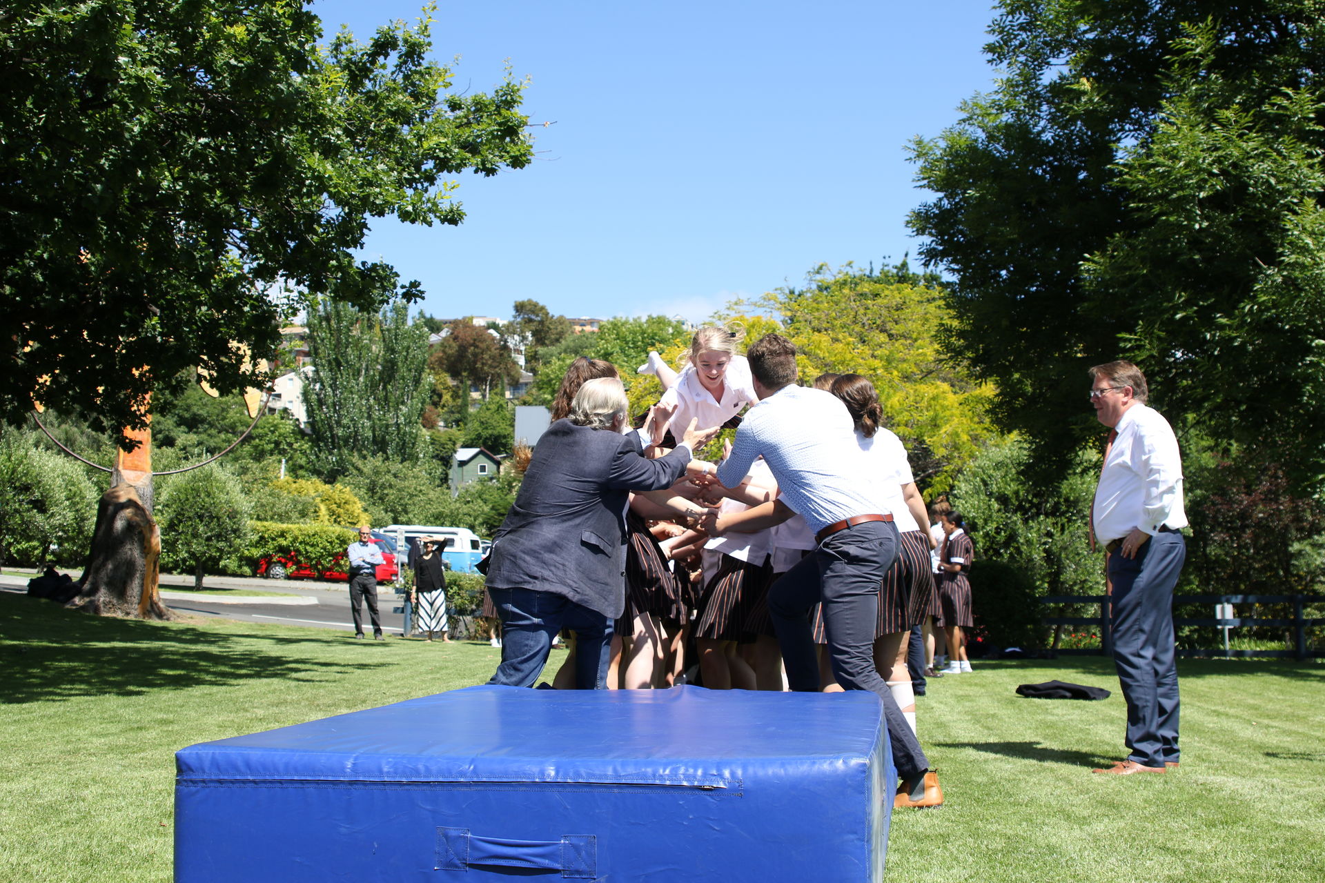 On Tuesday 11 December, continuing a tradition that dates back to the late 1930s, the Class of 2018 were ceremoniously “Tossed Out” on the Boarders’ Flat outside Nateby. Amid shrieks of laughter and excitement and in the presence of staff, family and friends, the Year 12 leavers were bounced along a line of linked hands formed by the Year 11 girls and “Tossed Out” of the School.