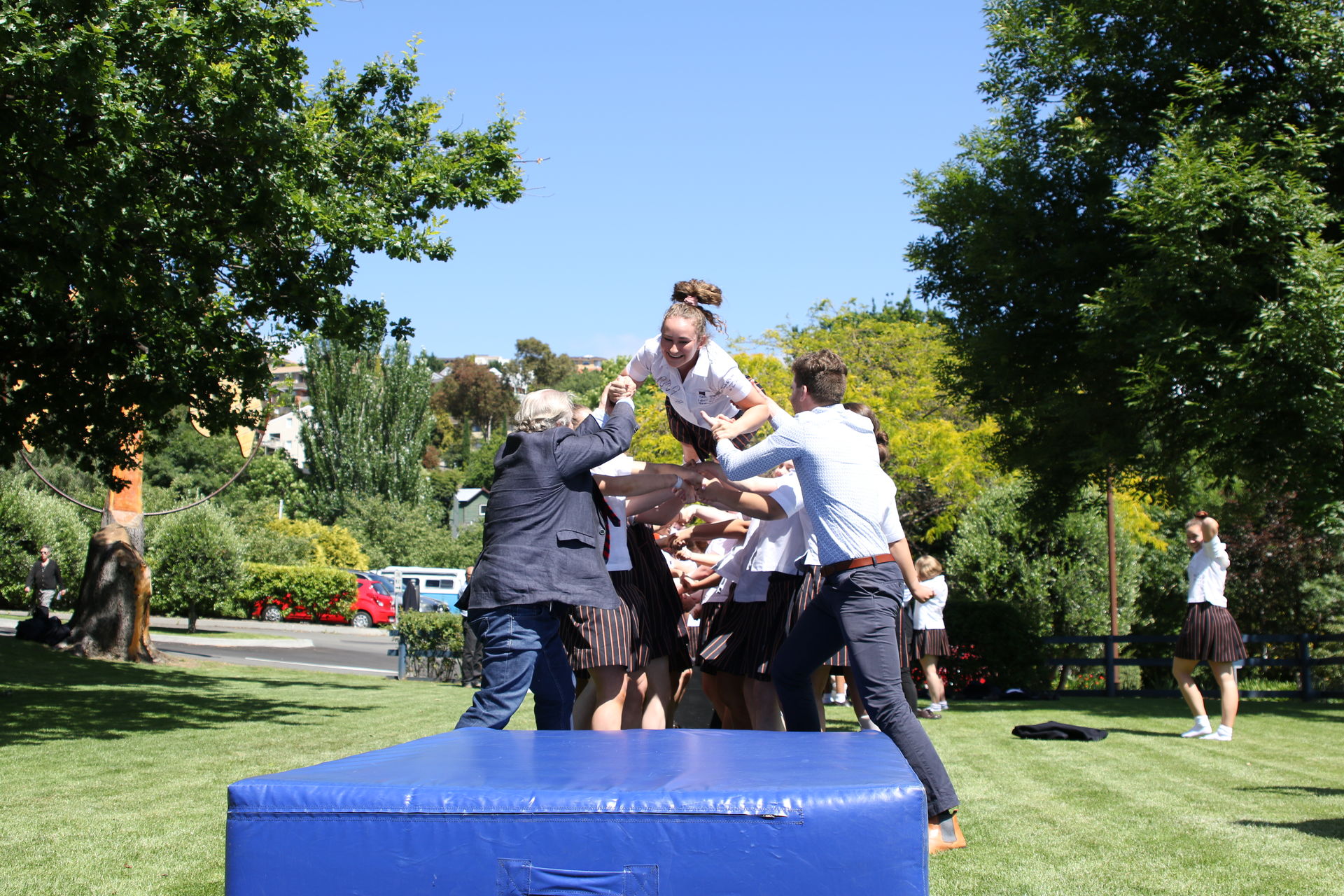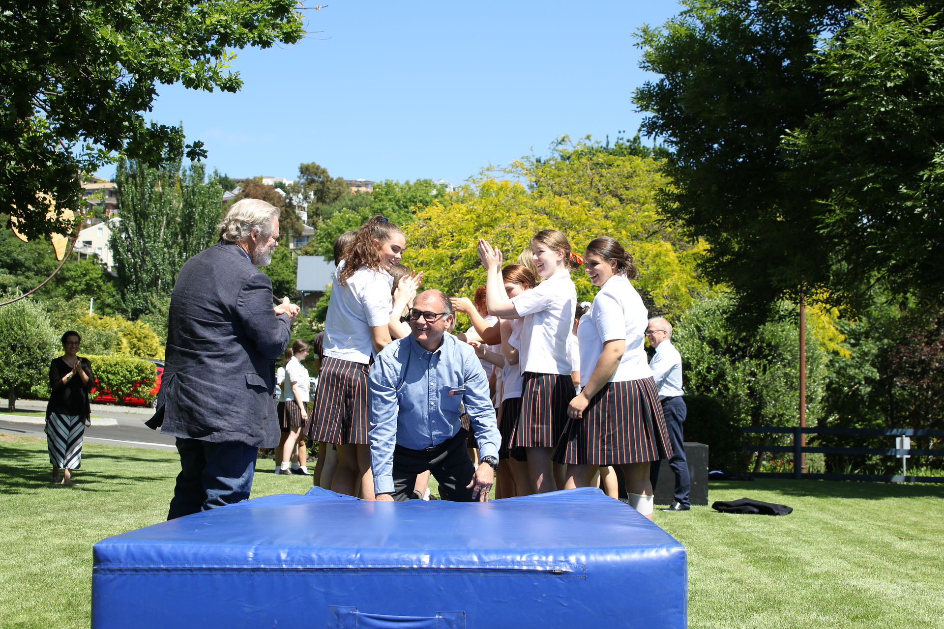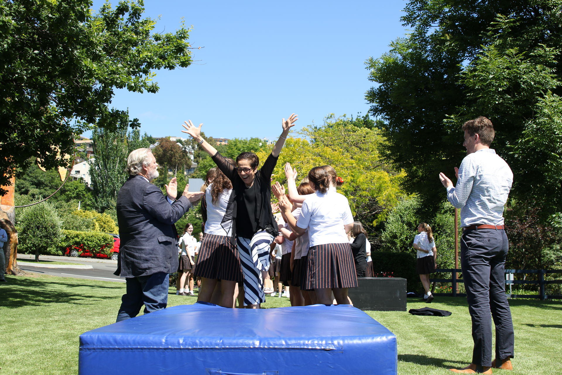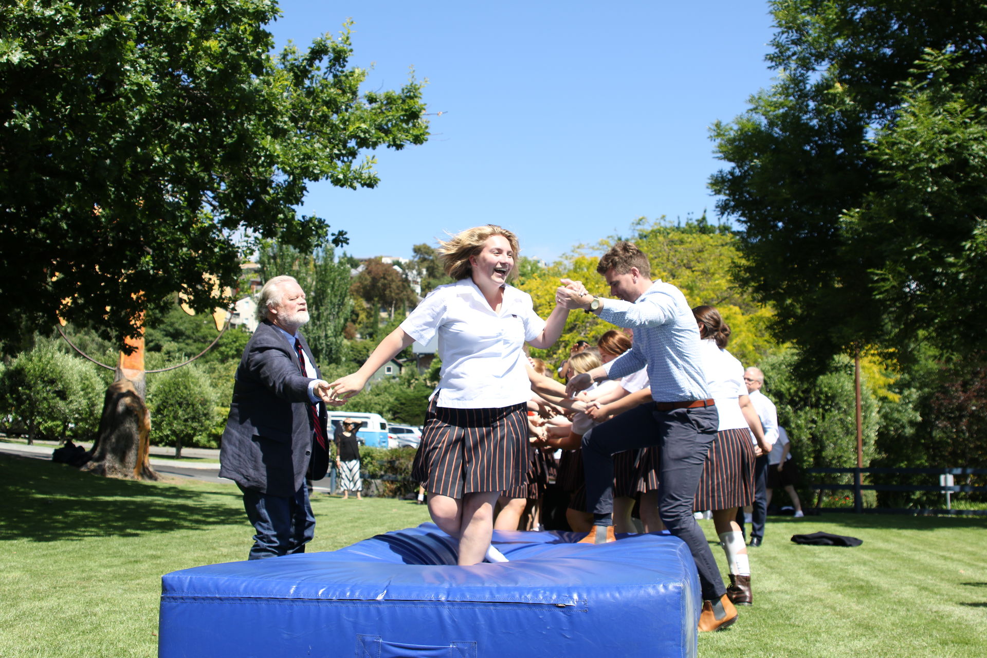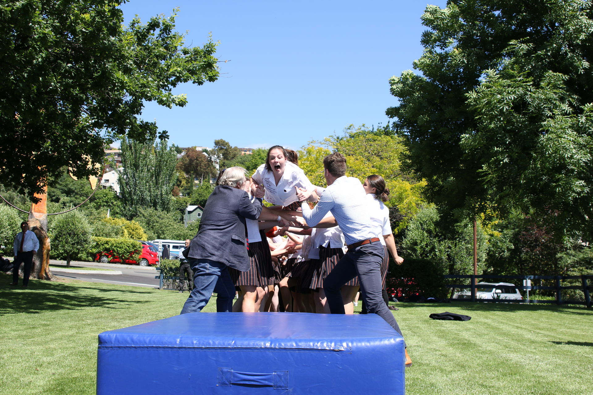 On Tuesday 11 December, continuing a tradition that dates back to the late 1930s, the Class of 2018 were ceremoniously “Tossed Out” on the Boarders’ Flat outside Nateby. Amid shrieks of laughter and excitement and in the presence of staff, family and friends, the Year 12 leavers were bounced along a line of linked hands formed by the Year 11 girls and “Tossed Out” of the School.