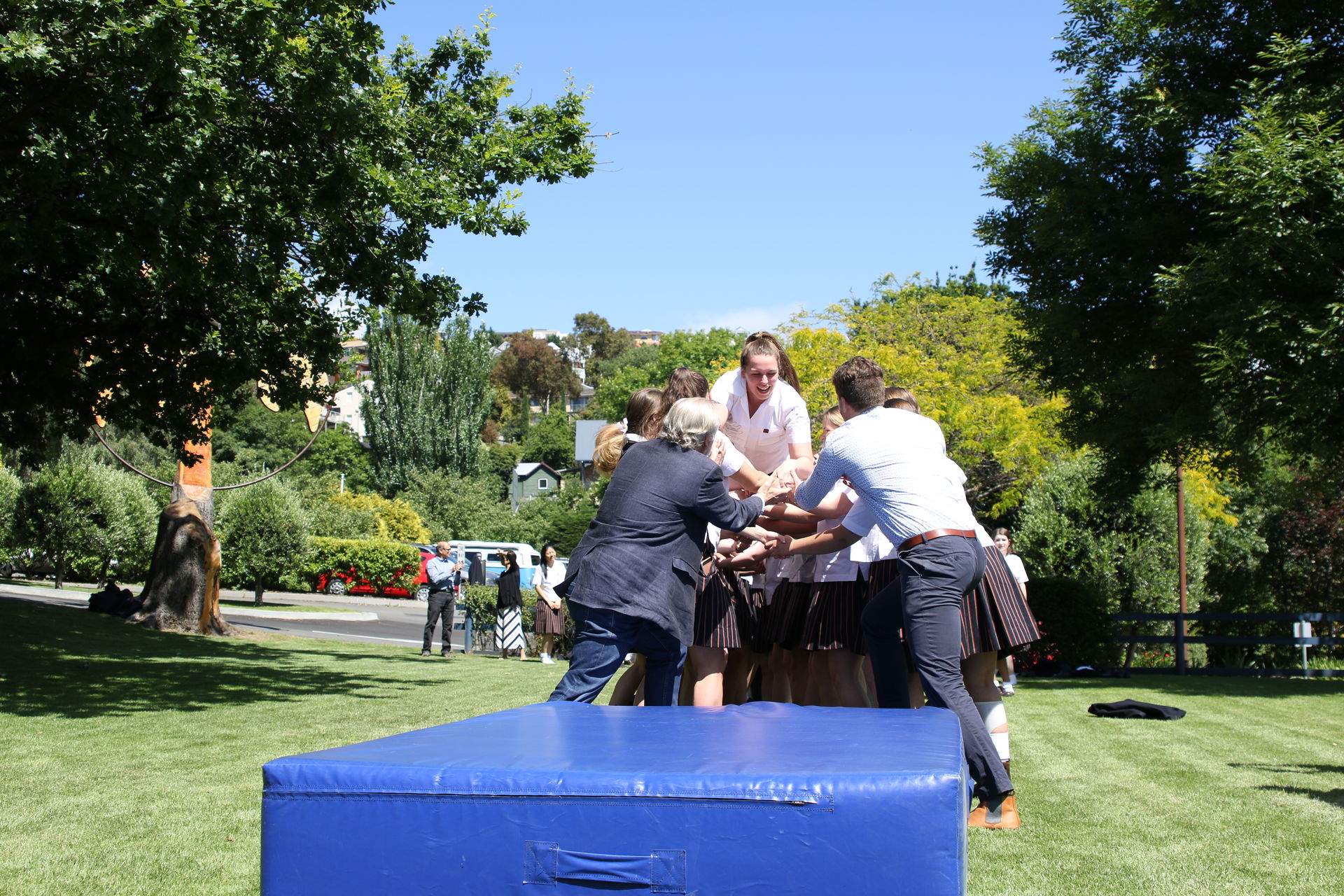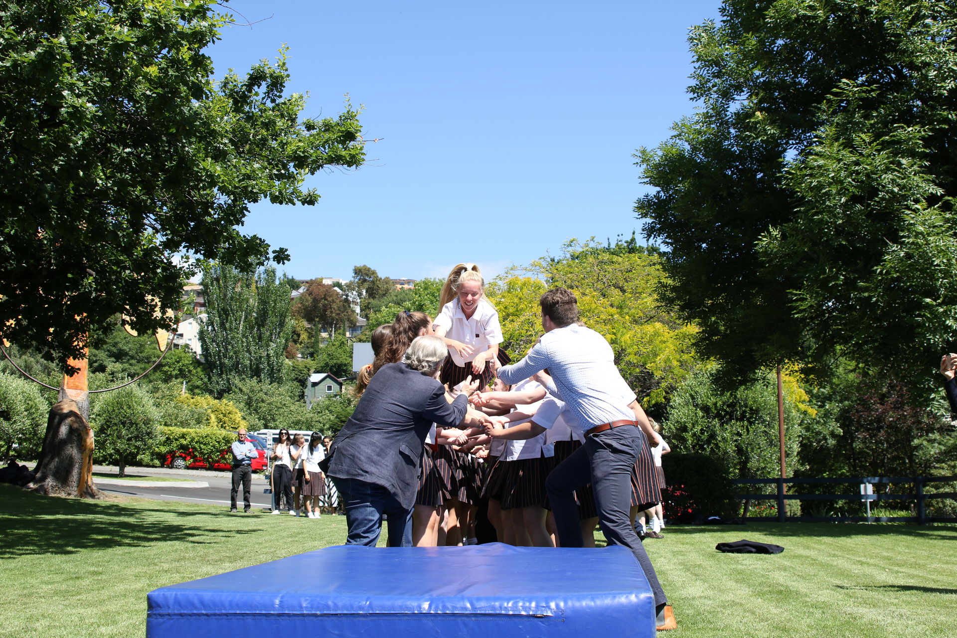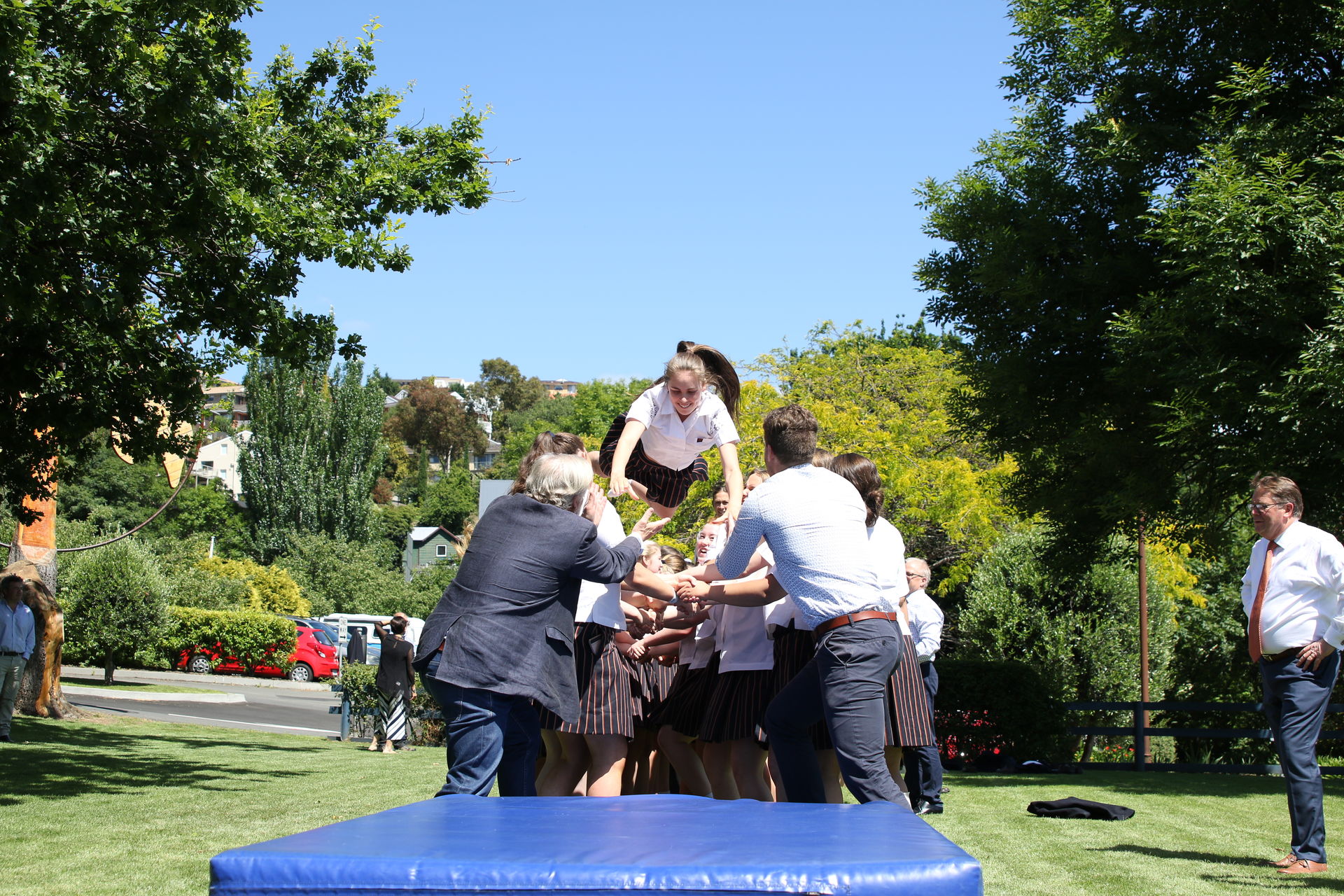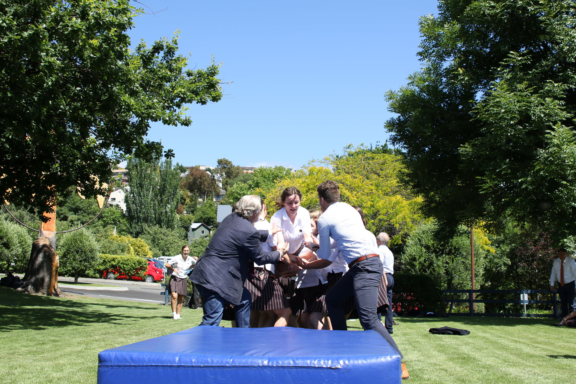 On Tuesday 11 December, continuing a tradition that dates back to the late 1930s, the Class of 2018 were ceremoniously “Tossed Out” on the Boarders’ Flat outside Nateby. Amid shrieks of laughter and excitement and in the presence of staff, family and friends, the Year 12 leavers were bounced along a line of linked hands formed by the Year 11 girls and “Tossed Out” of the School.
