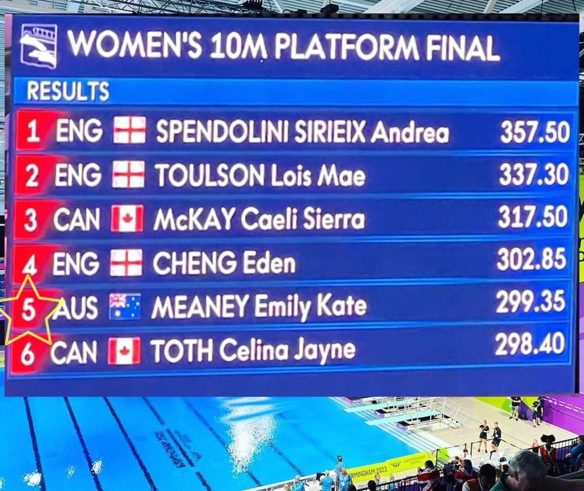 A great performance by Emily Meaney (Class of 2015) in the women’s platform finals. Not only did she improve her standing from 12th to 5th, but she was the top ranked Aussie in an event that provided some tough opposition, especially from the English and Canadian divers.