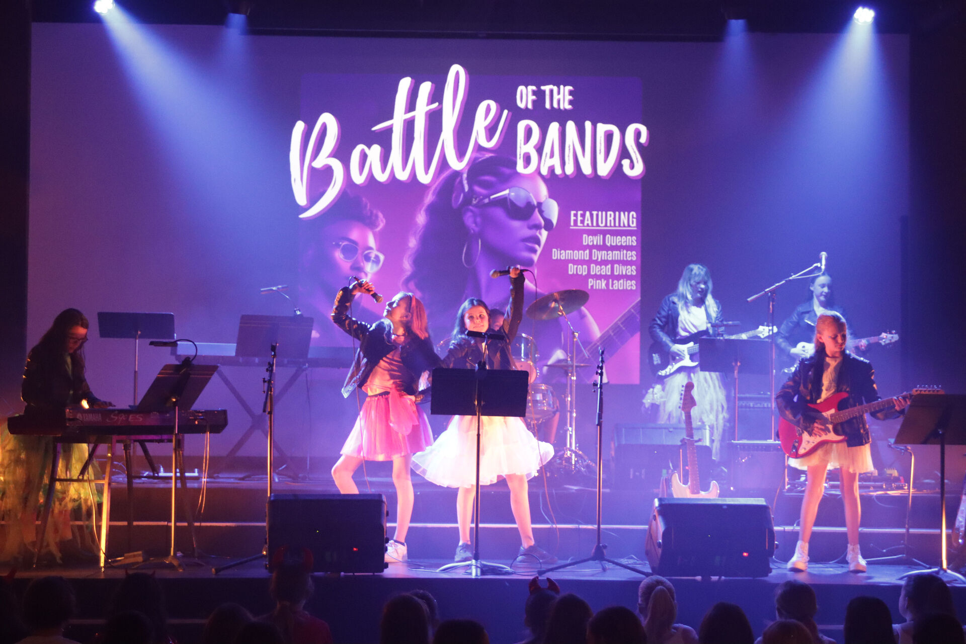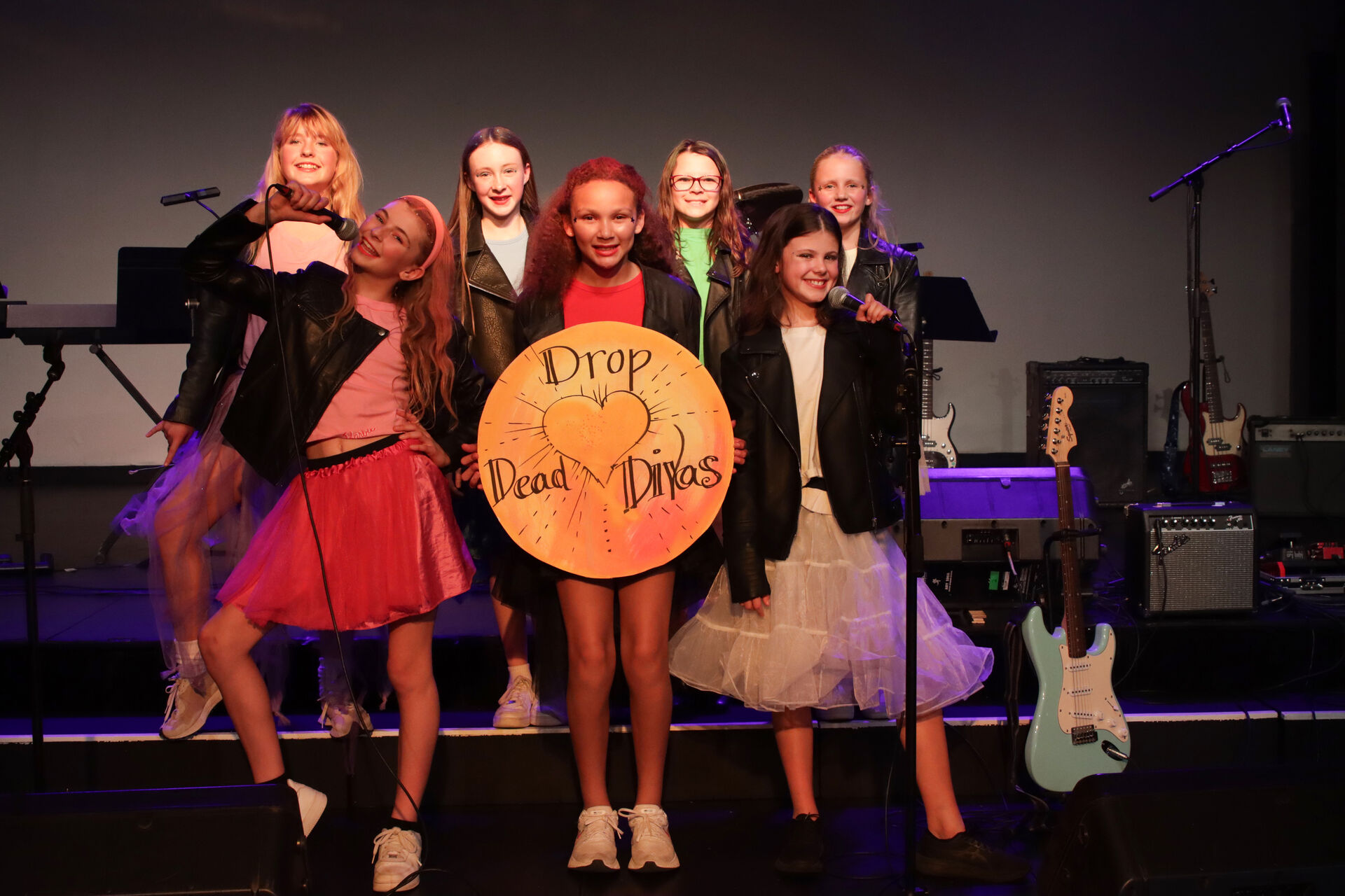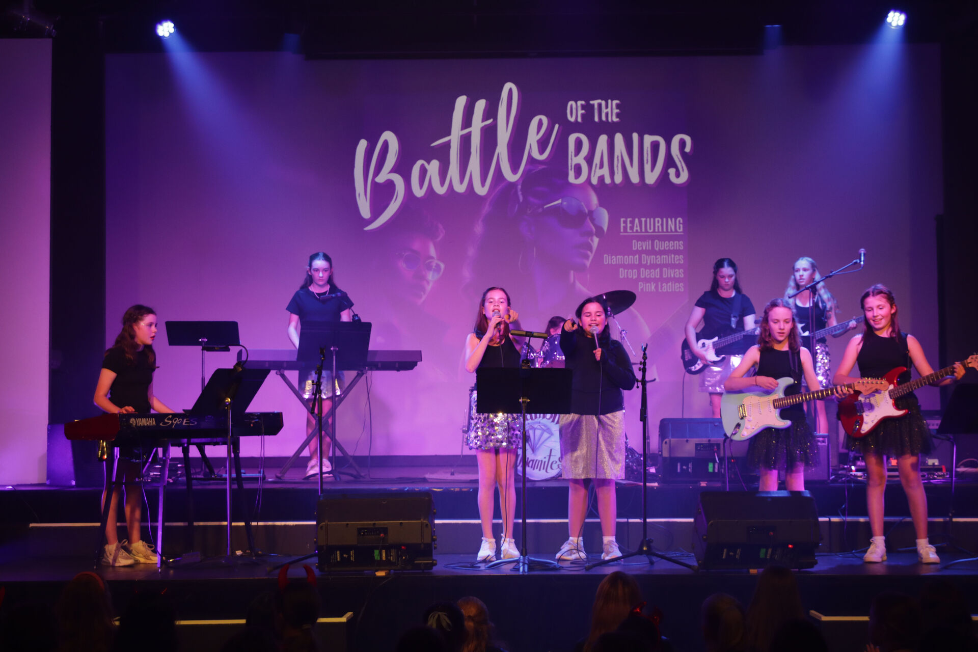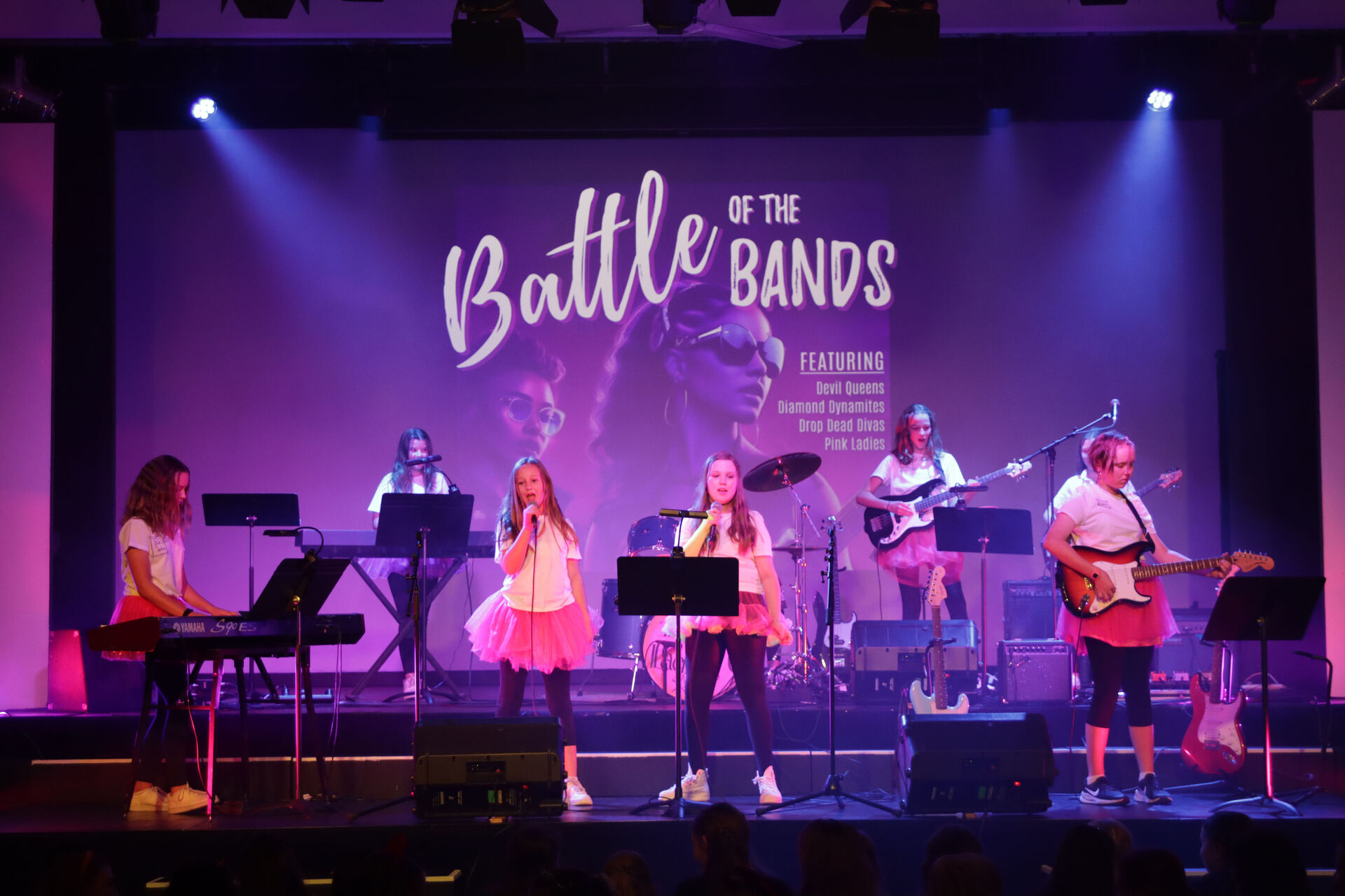 Year 6 students rocked the house this week with their Battle of the Bands competition. They were given the task of forming their own bands, selecting unique names and styles, choosing a song, and learning to play new instruments. The four rock bands - Devil Queens, Diamond Dynamites, Drop Dead Divas and Pink Ladies - were an exceptional mix of electric guitar, bass guitar, keyboard, drums, and vocals, displaying the diverse musical talents of every student. The girls worked tirelessly over the last few months and wowed the enthusiastic audience with their incredible performances in a closely fought contest. After an intense battle, Drop Dead Divas were declared the winners. The audience was thrilled by the special guest appearance of Get Staffed who rocked the crowd ending a fantastic and highly charged concert. Thank you to our adjudicator, Dan Taylor from Hit100.9!