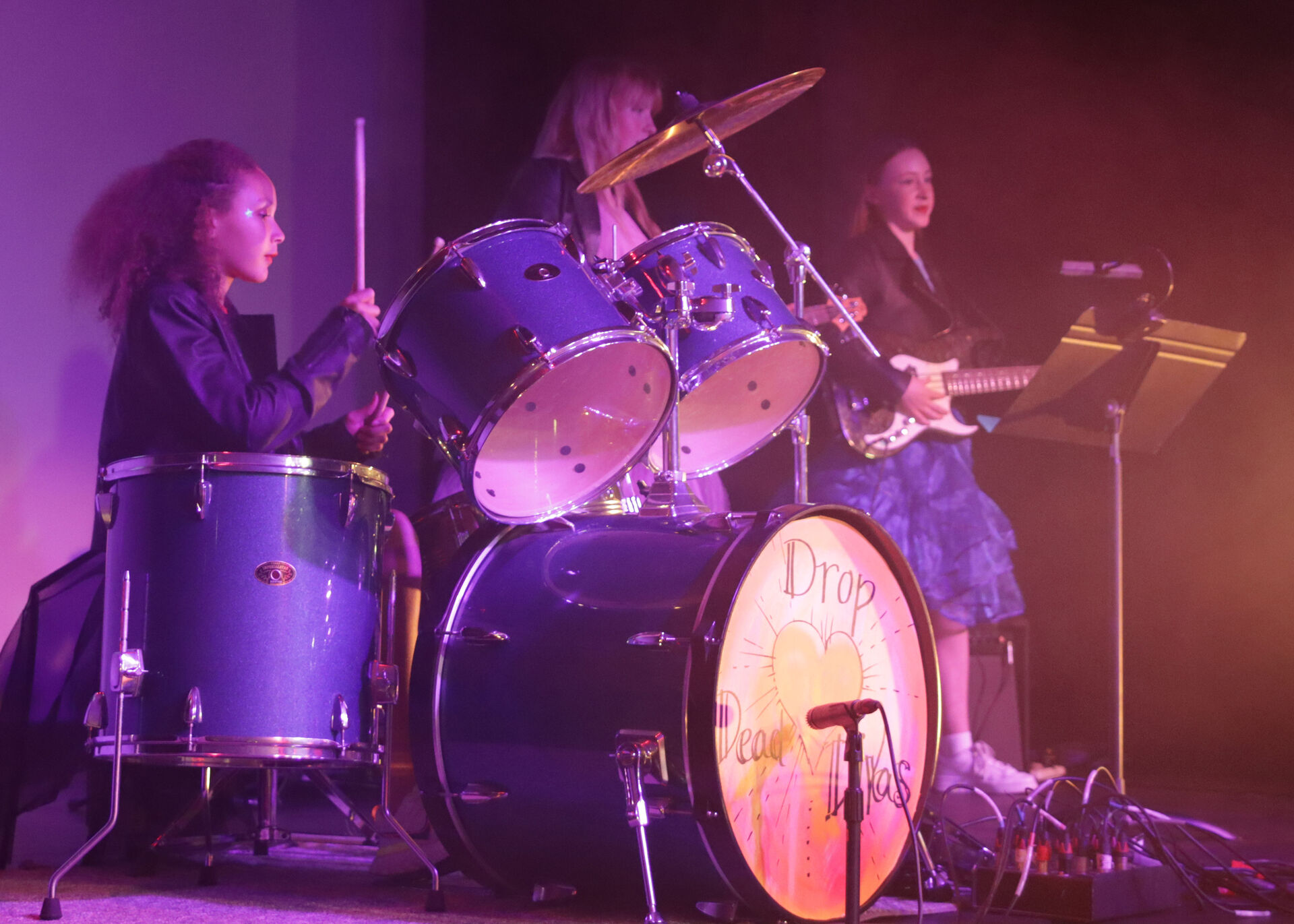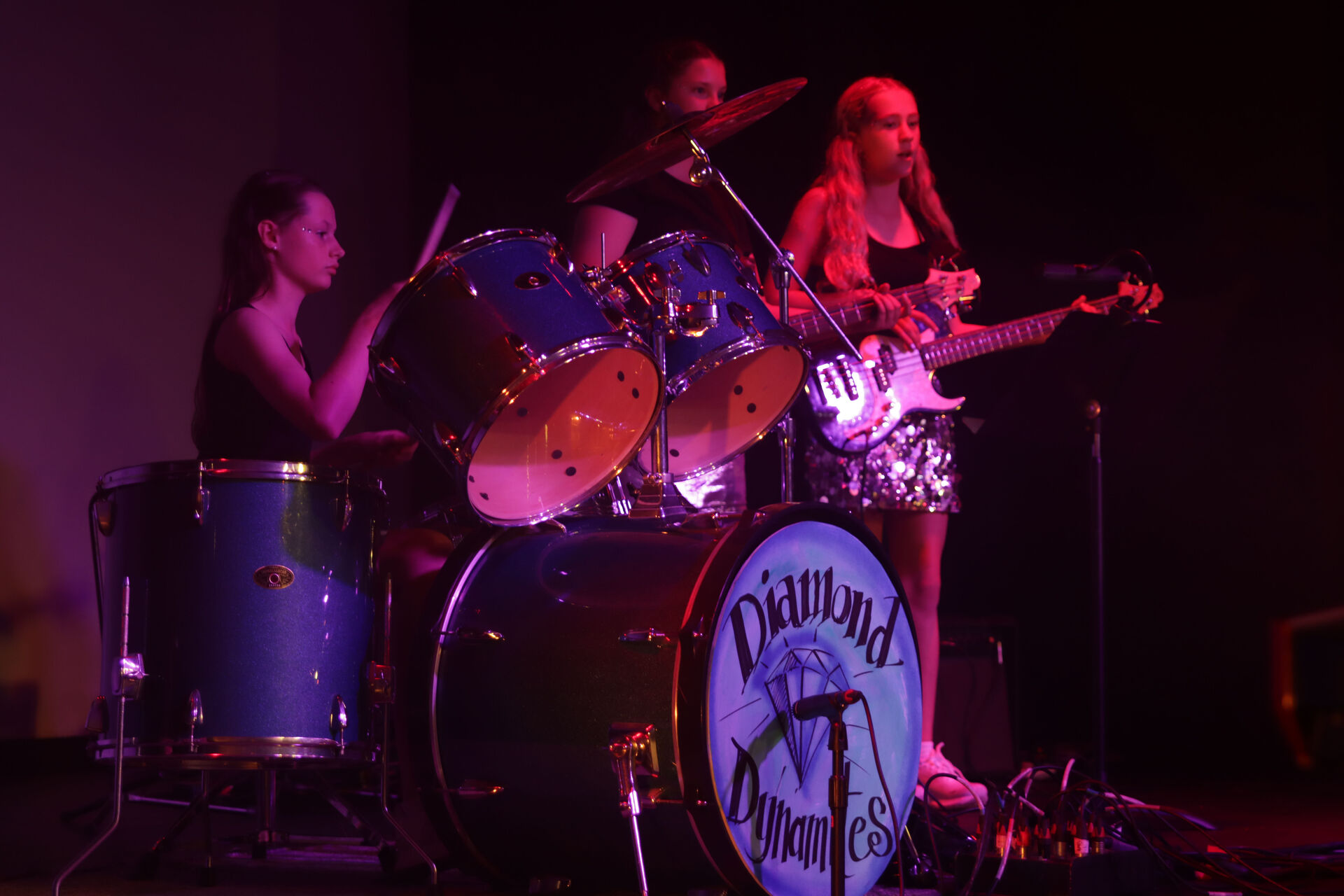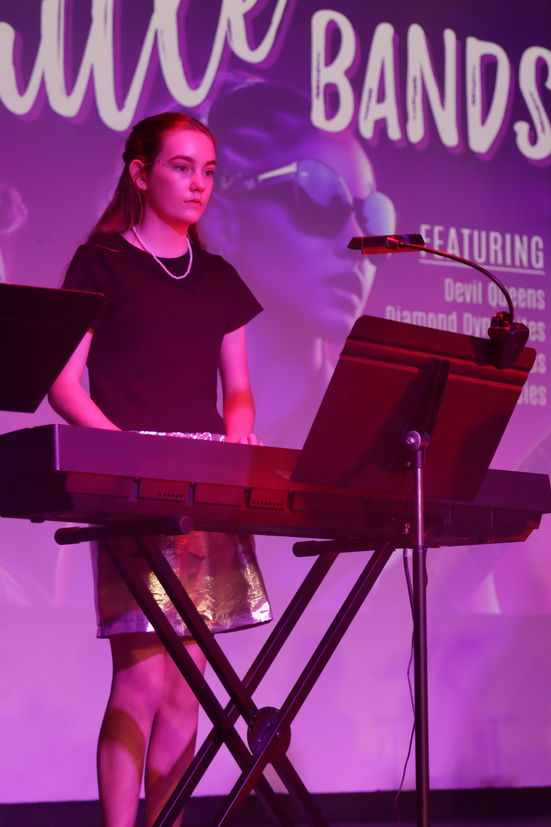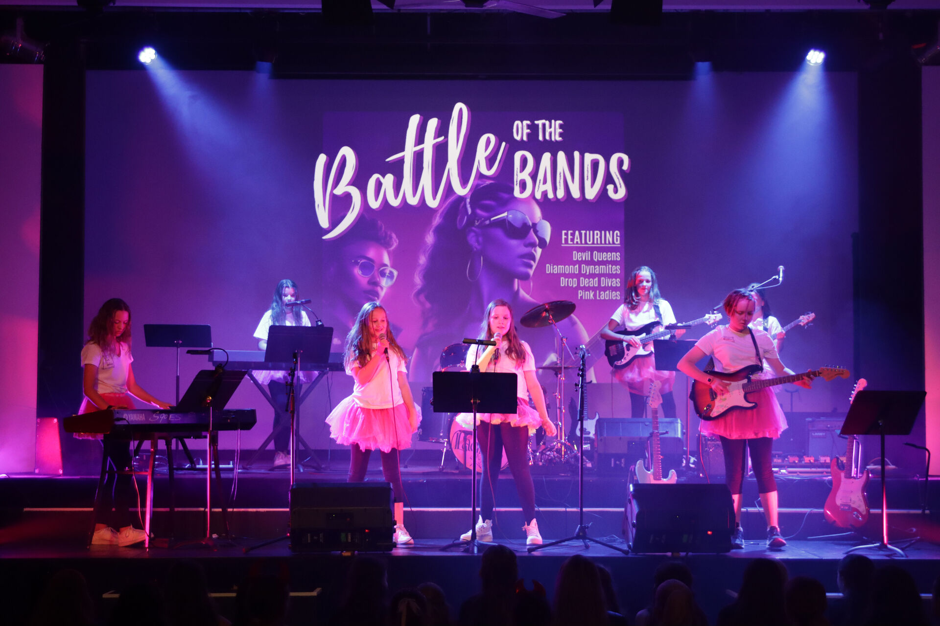 Year 6 students rocked the house this week with their Battle of the Bands competition. They were given the task of forming their own bands, selecting unique names and styles, choosing a song, and learning to play new instruments. The four rock bands - Devil Queens, Diamond Dynamites, Drop Dead Divas and Pink Ladies - were an exceptional mix of electric guitar, bass guitar, keyboard, drums, and vocals, displaying the diverse musical talents of every student. The girls worked tirelessly over the last few months and wowed the enthusiastic audience with their incredible performances in a closely fought contest. After an intense battle, Drop Dead Divas were declared the winners. The audience was thrilled by the special guest appearance of Get Staffed who rocked the crowd ending a fantastic and highly charged concert. Thank you to our adjudicator, Dan Taylor from Hit100.9!