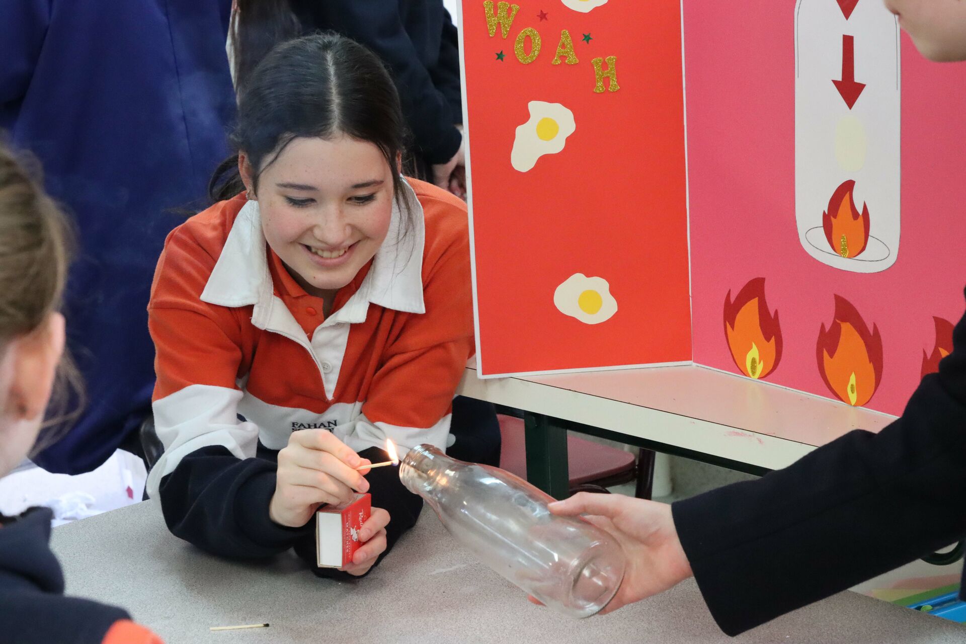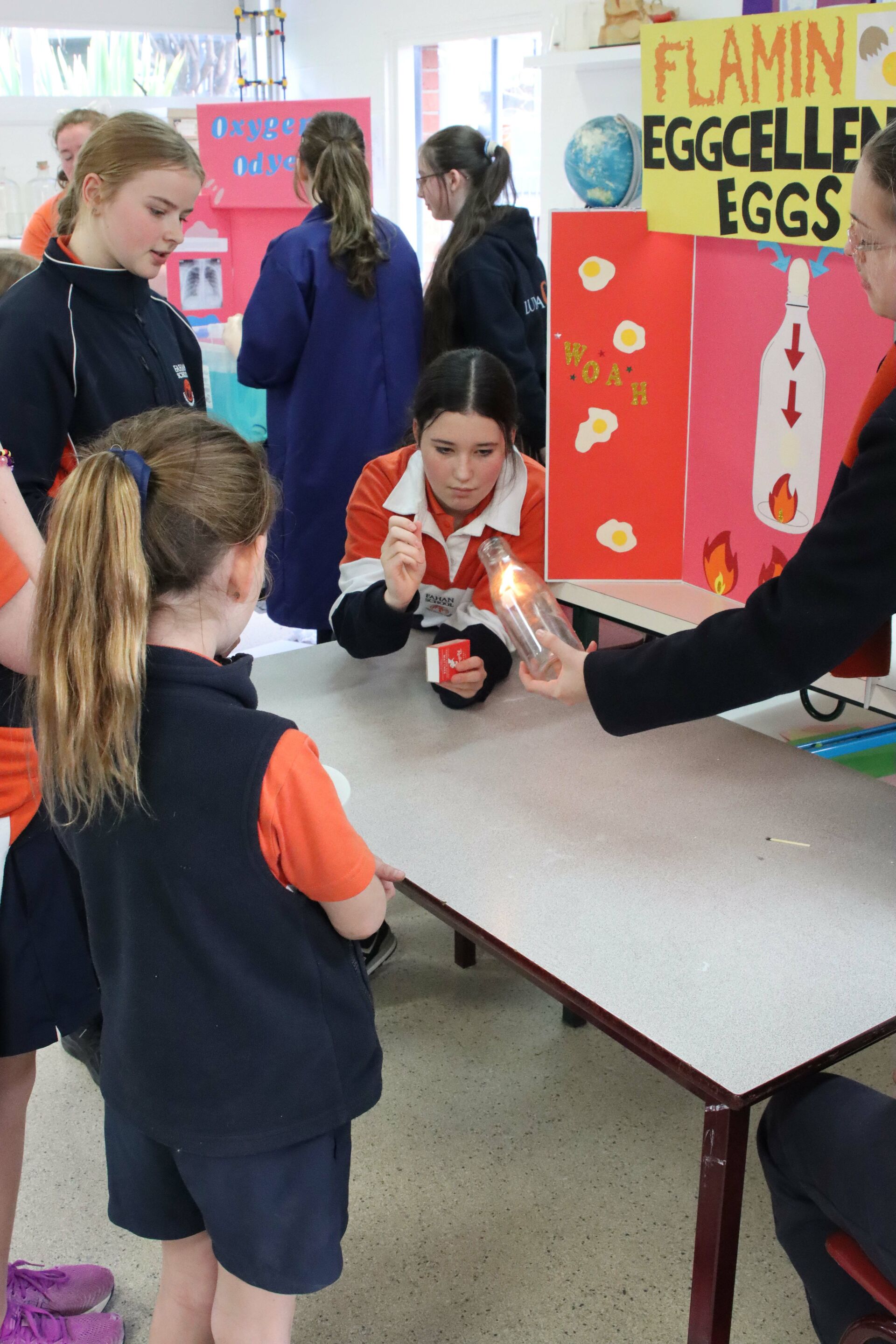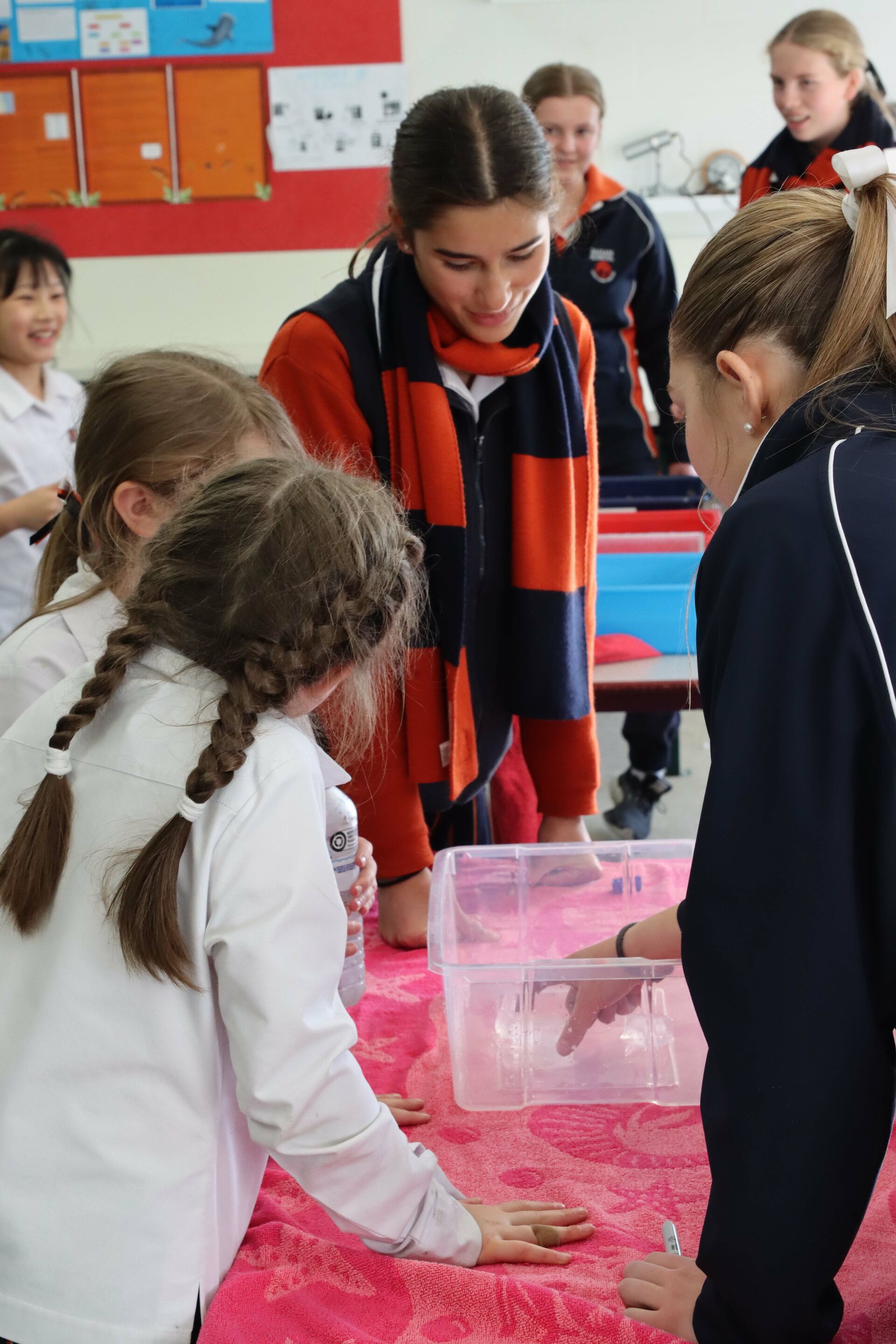 The theme for Science Week 2024 was "Species Survival – More Than Just Sustainability." Throughout the week, science and technology were celebrated across the campus with excursions, competitions, lunchtime activities, and sensational Chemistry experiments. Dr Stewart's air cannon demonstrations were impressive, and the vortex smoke rings were definitely a crowd-pleaser. Students from Years 7 to 12 competed in a giant Kahoot game where science questions focussed on Endangered Species. Each team was hotly contested, and the winners were given a sweet prize at the end. On Friday, Year 4 students visited the Festival of Bright Ideas at Princes Wharf, immersing themselves in a world of fascinating scientific discoveries. They explored an array of exhibits and hands-on activities, asking lots of questions along the way.
