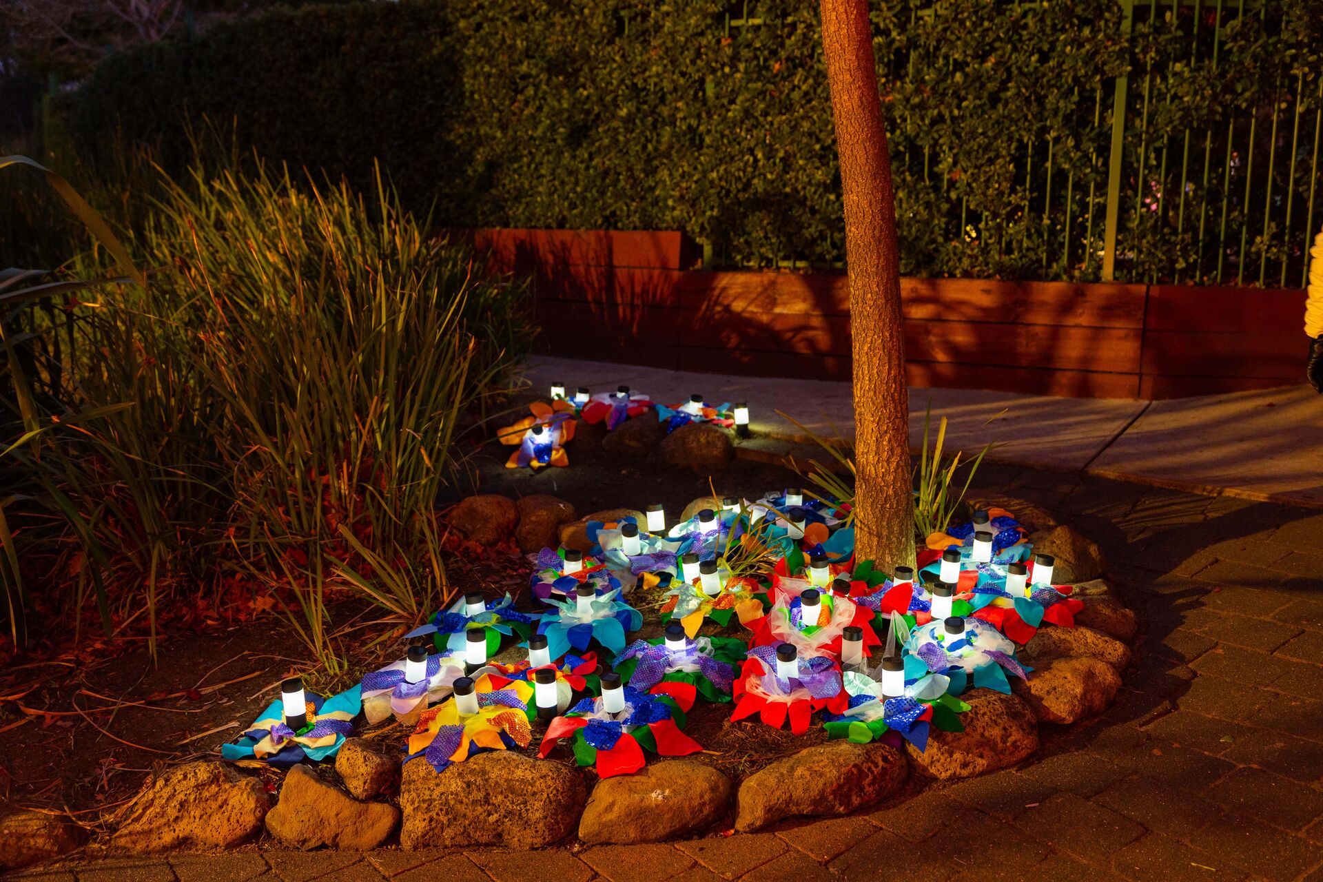 The campus was absolutely stunning, with lights and installations casting a magical glow that brought Fahan’s story to life. Nine sweeping beams reached into the sky to represent each decade of the School's history.