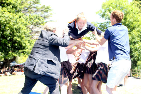The Tossing Out ceremony is a time-honoured tradition at Fahan where the Year 12 girls are lovingly tossed along a sea of arms to mark their passing from a Fahan student to a Fahan Alumni member.